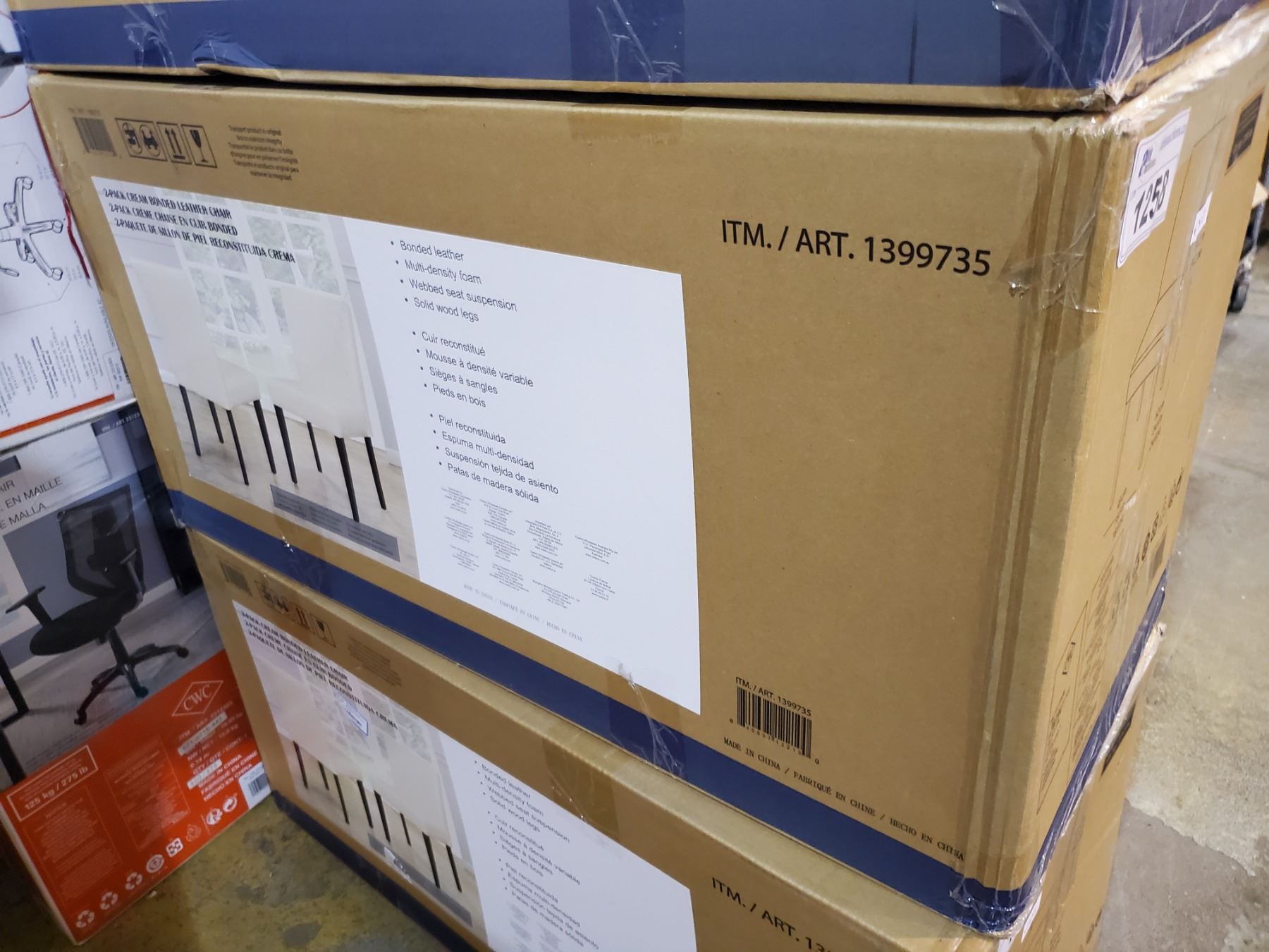 BOX OF 2 CREAM BONDED CLOTH AND WOOD CHAIRS