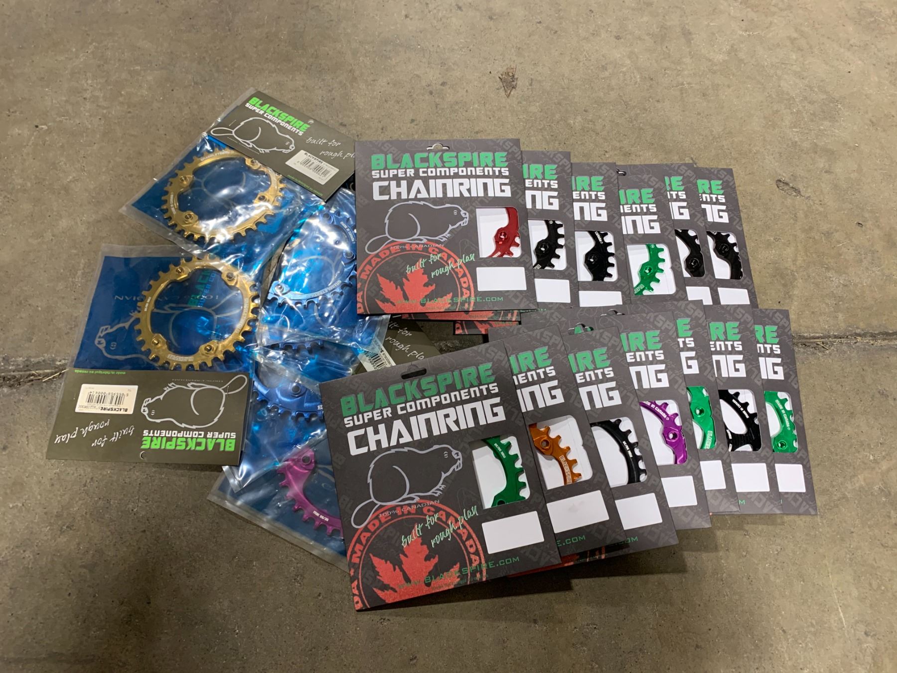 BOX OF 20 PIECES ASSORTED RACEFACE, SPLINE CHAINRINGS, SNAGGLETOOTH 9020 XTR