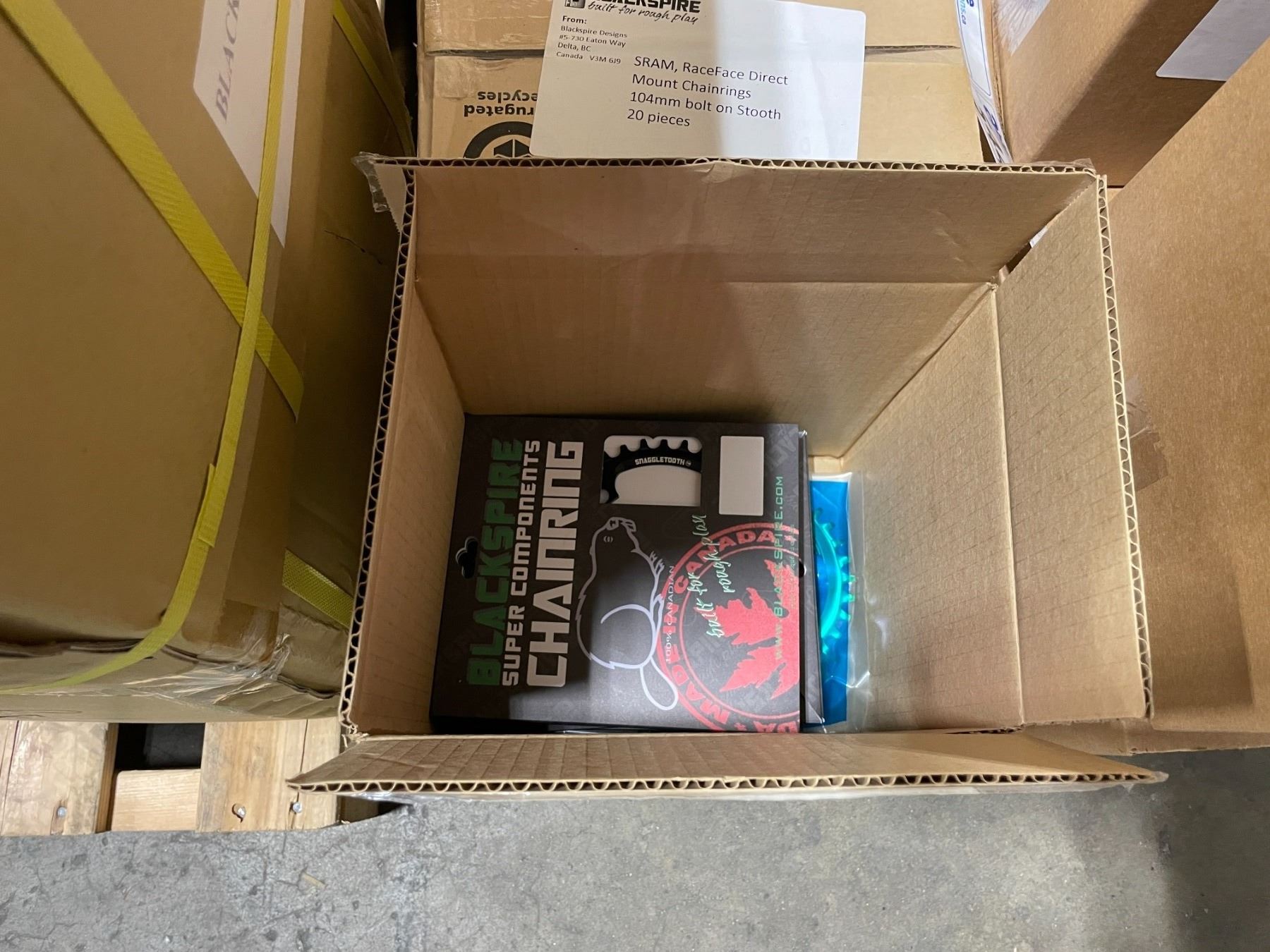 BOX OF 20 PIECES ASSORTED SRAM, RACEFACE DIRECT MOUNT CHAINRINGS, 104MM BOLT ON STOOTH