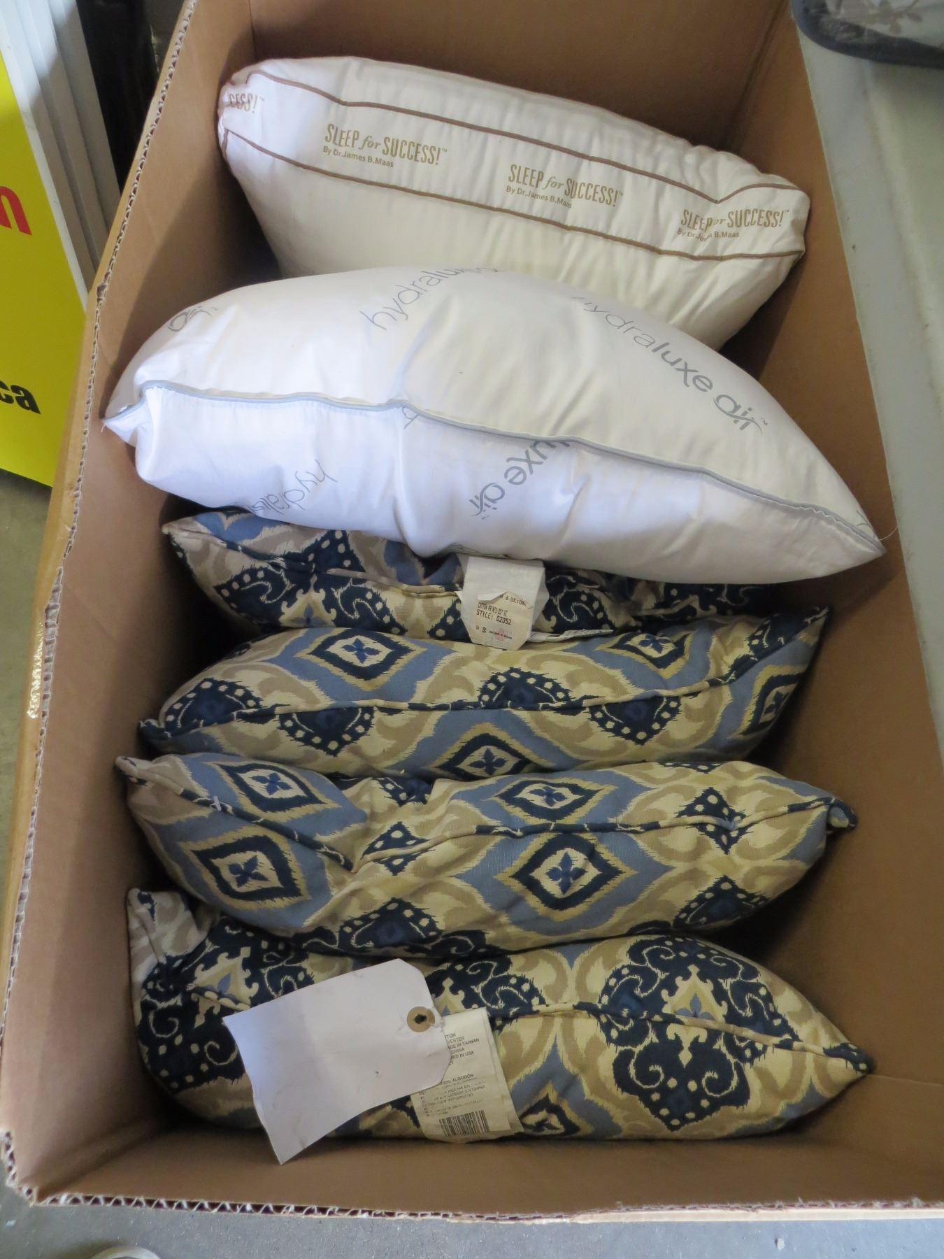 BOX OF 4 THROW PILLOWS & 2 BED PILLOWS