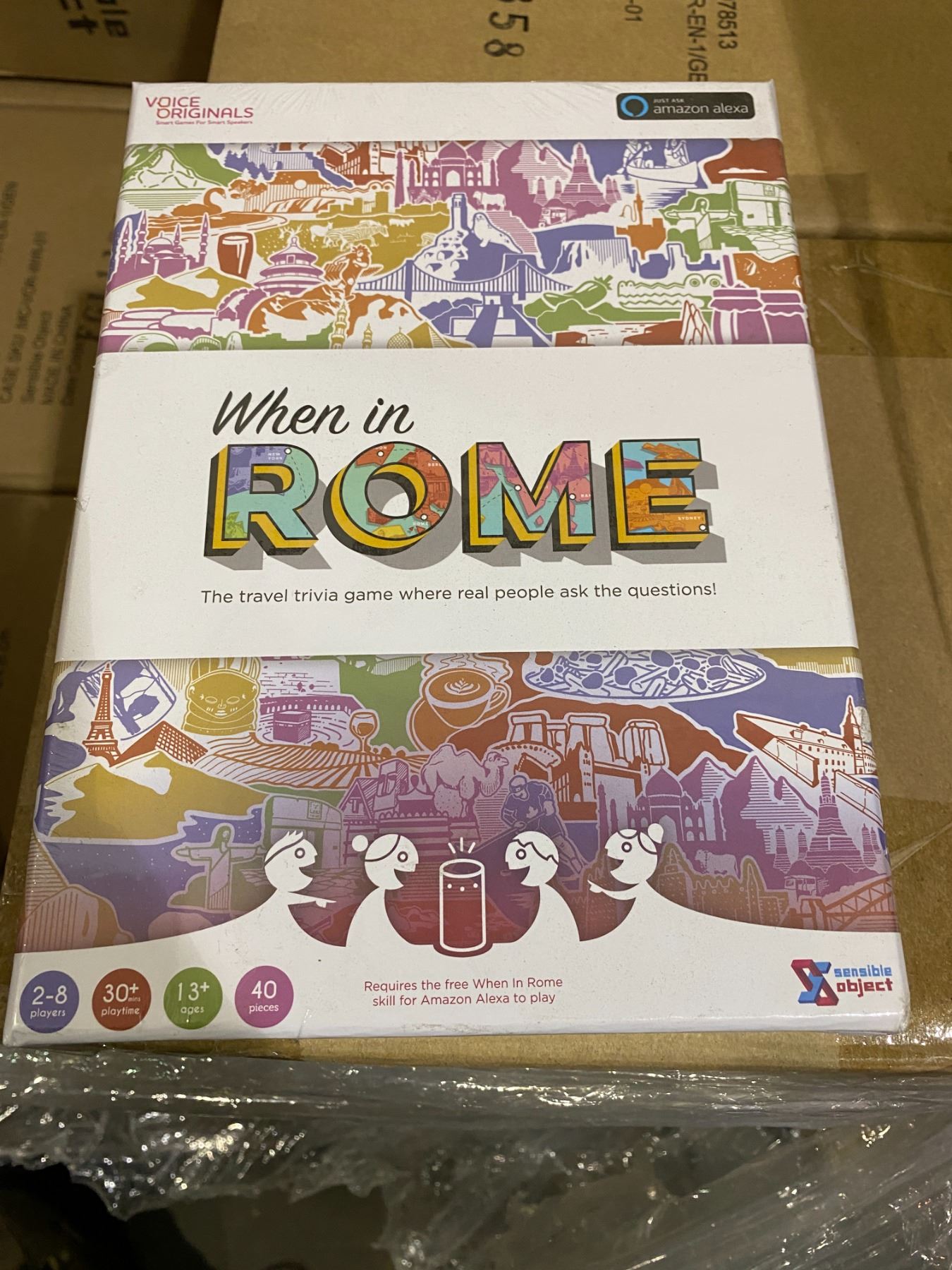 BOX OF 5X VOICE ORIGINALS  WHEN IN ROME  TRAVEL TRIVIA BOARD GAME (POWERED BY ALEXA)