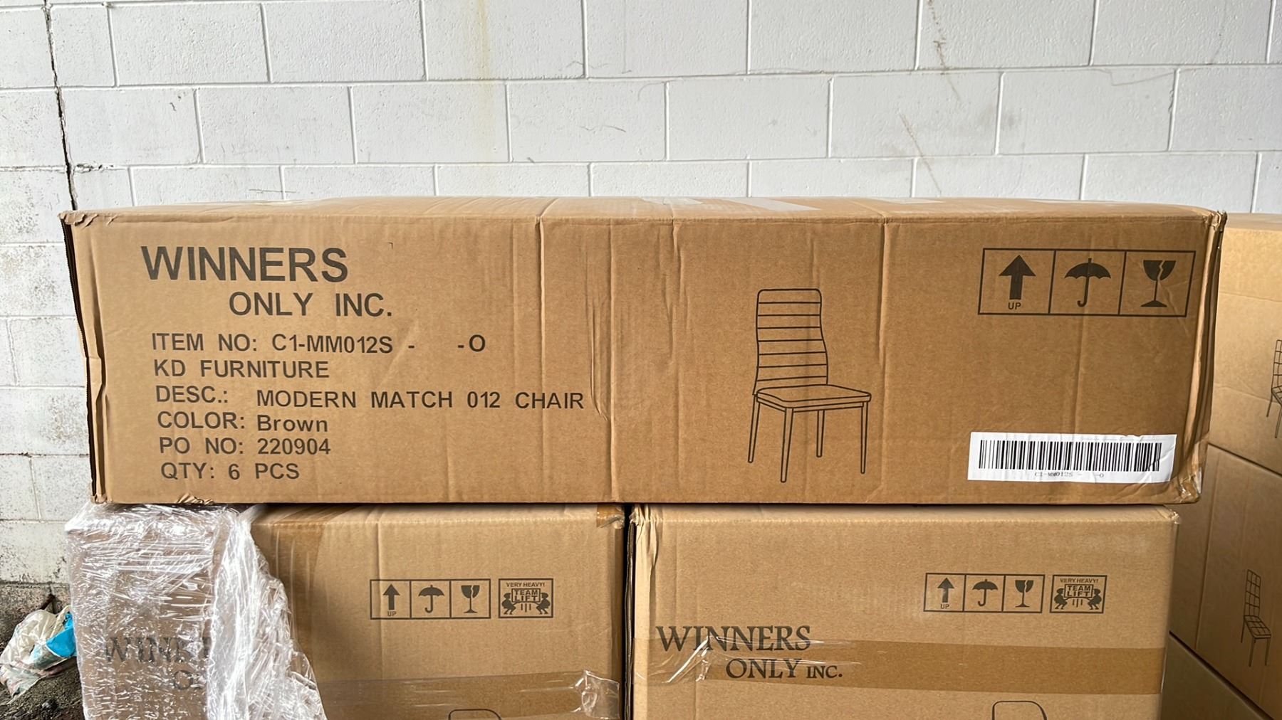 BOX OF 6 KD FURNITURE BROWN FABRIC DINING CHAIRS WITH BLACK LEGS - C1MM012S - O
