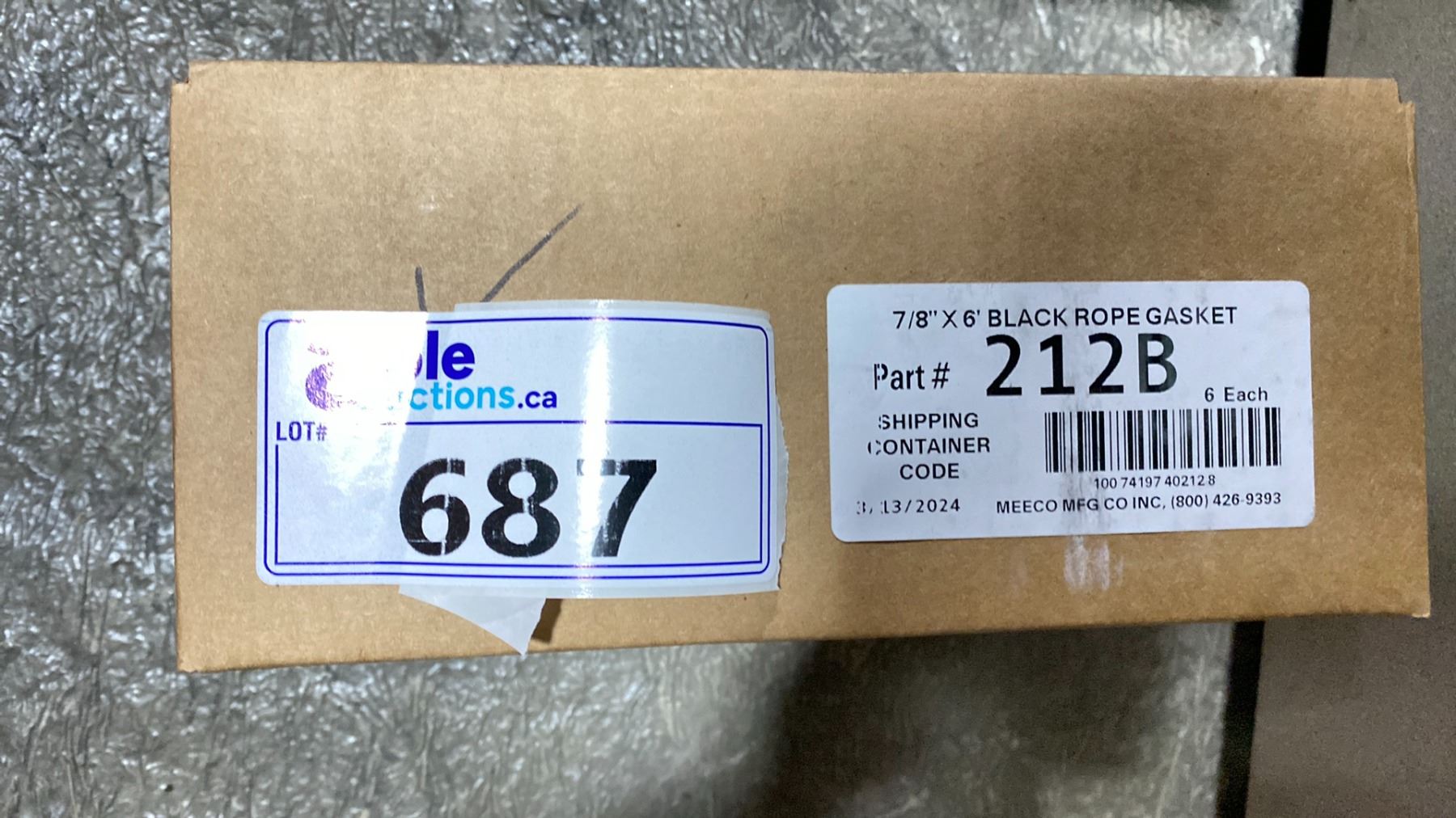 BOX OF 7/8"X6' BLACK ROPE GASKETS- 6 PER BOX PART #212B
