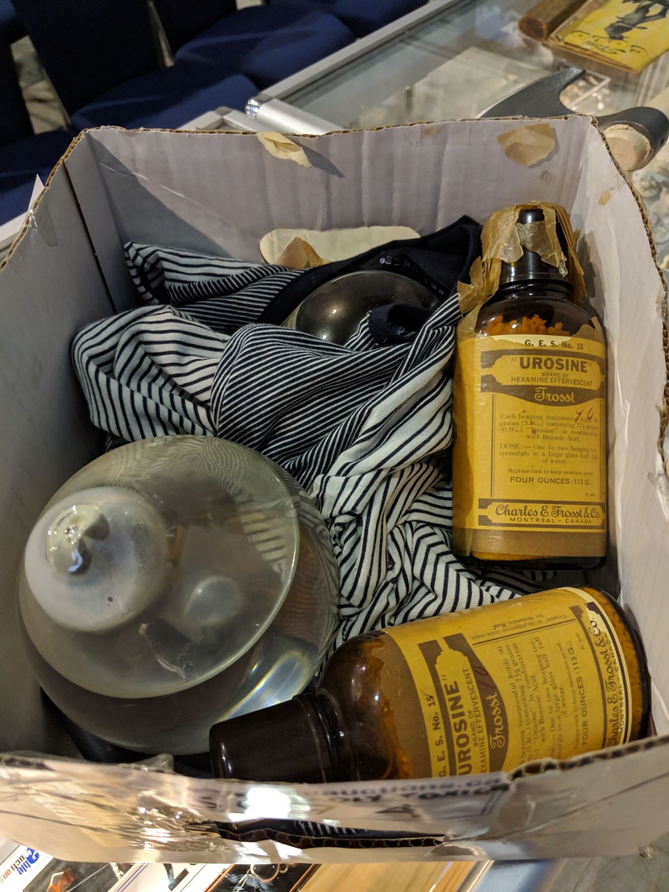 BOX OF ANTIQUE FIRE EXTINGUISHERS