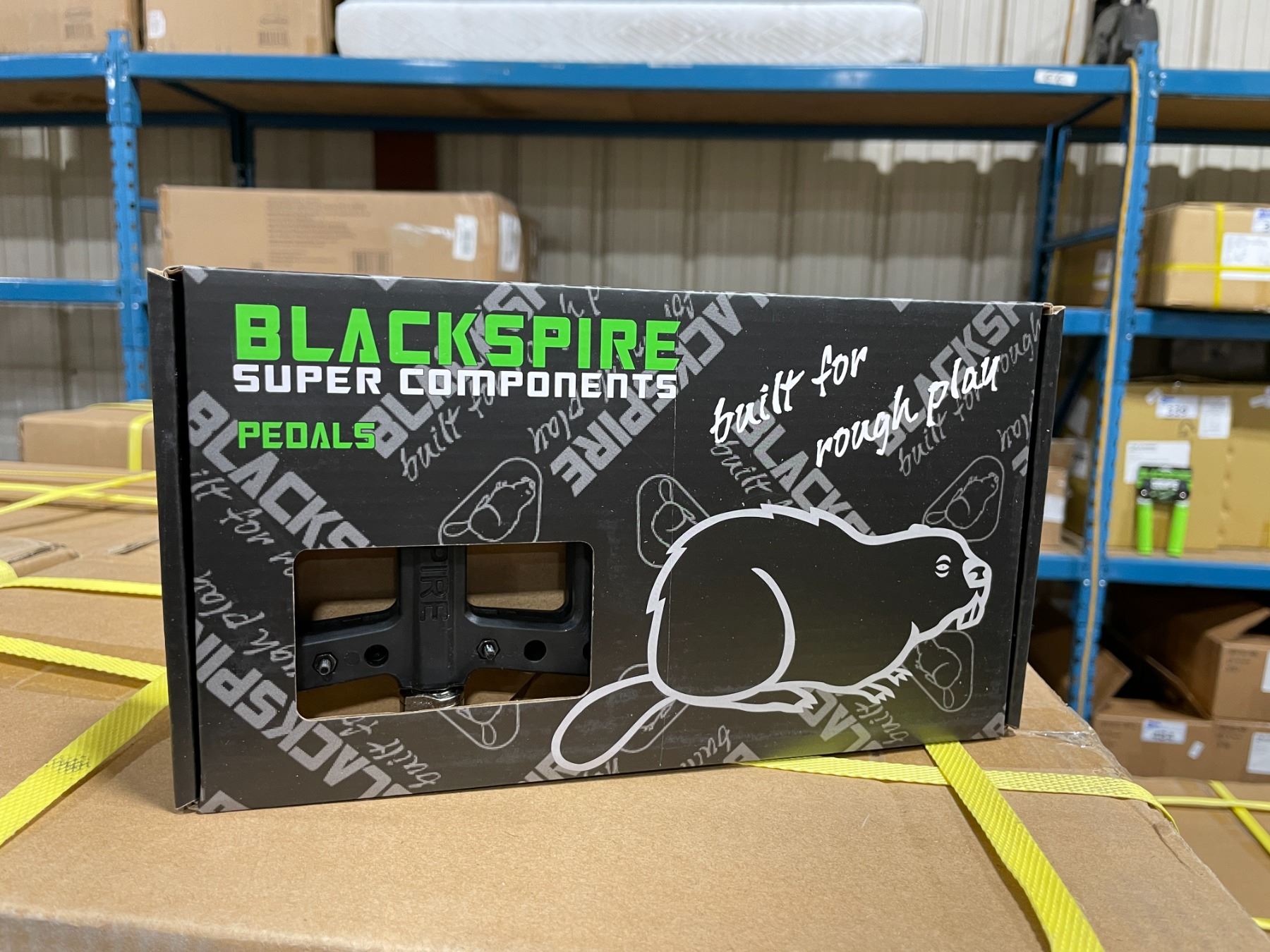 BOX OF APPROX 30 BLACKSPIRE BLACK NYLON PEDALS