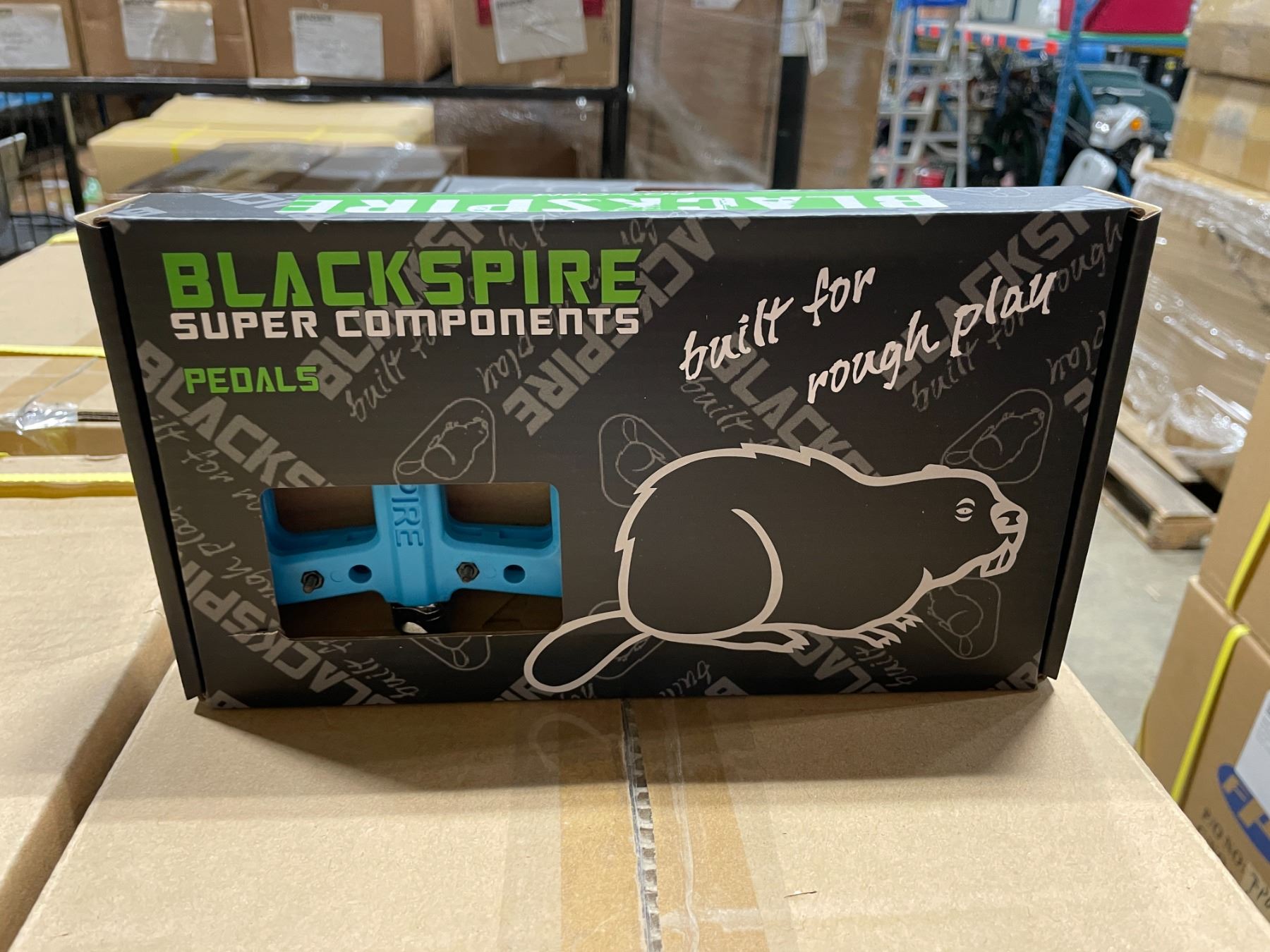 BOX OF APPROX 30 BLACKSPIRE BLUE NYLON MTB PEDALS