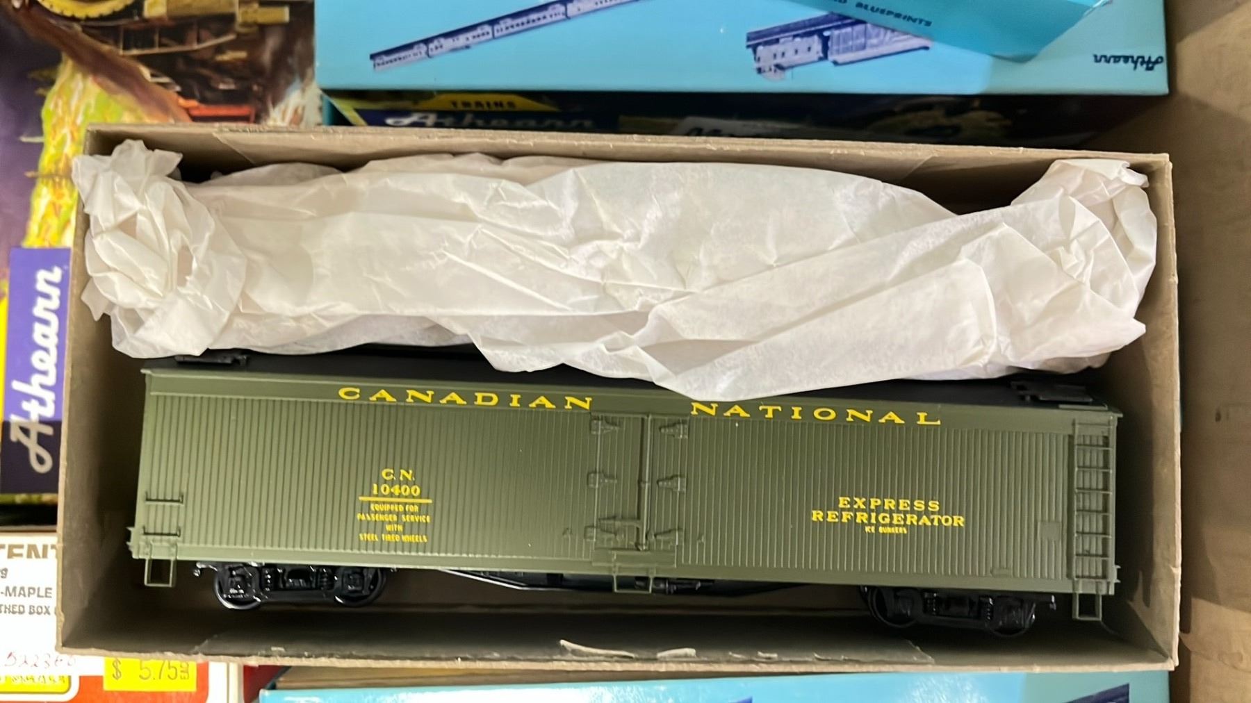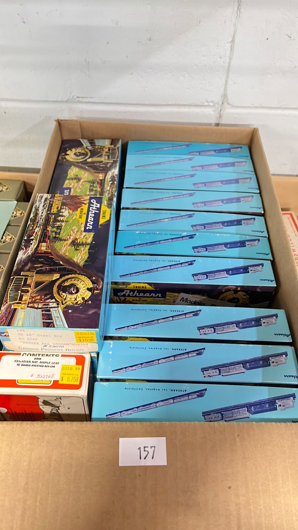 BOX OF ASSORTED ATHEARN MINIATURE HO SCALE MODEL TRAINS