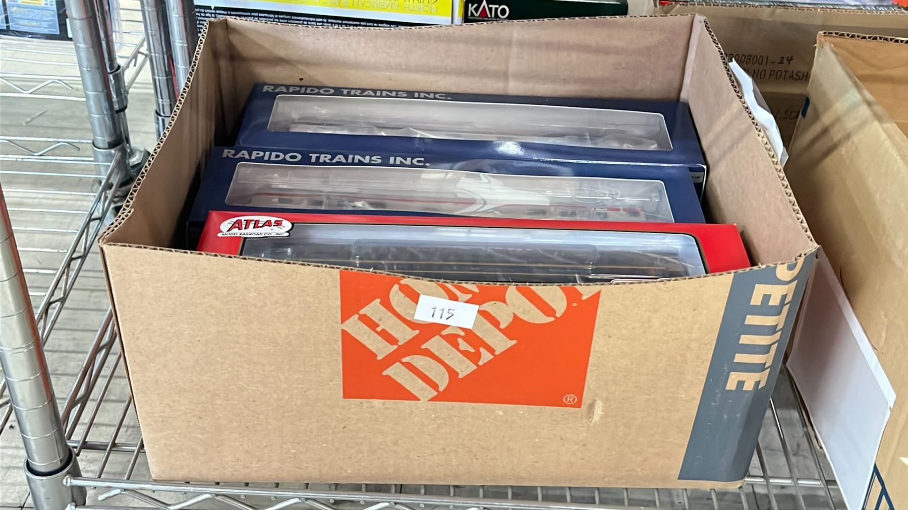 BOX OF ASSORTED ATLAS & RAPIDO MODEL TRAINS