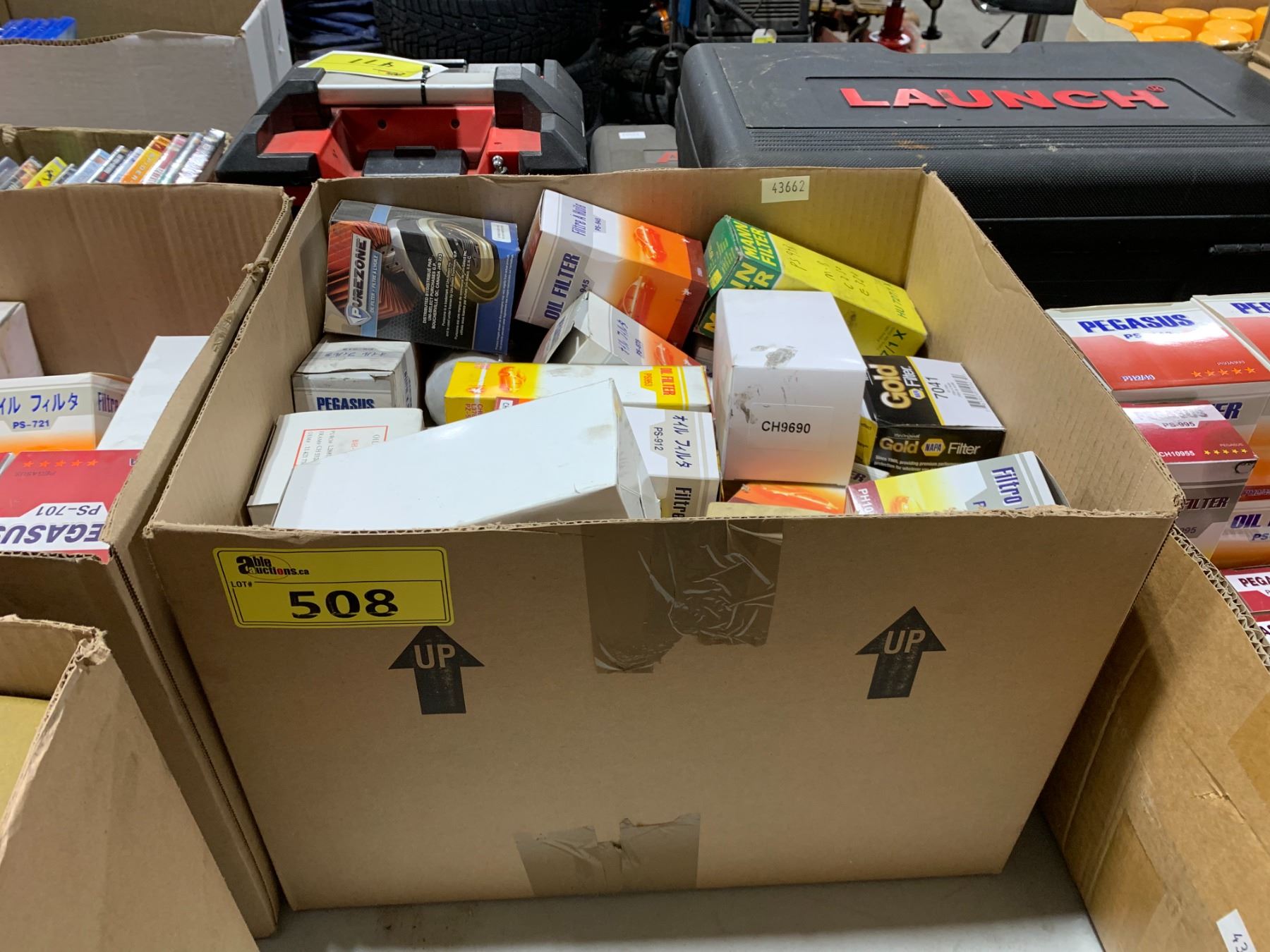 BOX OF ASSORTED AUTOMOTIVE OIL FILTERS