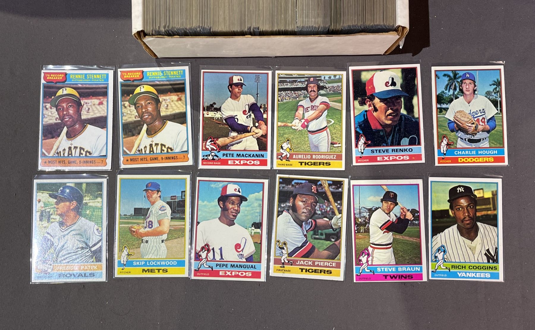 BOX OF ASSORTED BASEBALL CARDS INCLUDING; PETE MACKANIN, STEVE RENKO, RENNIE STENNETT AND MORE