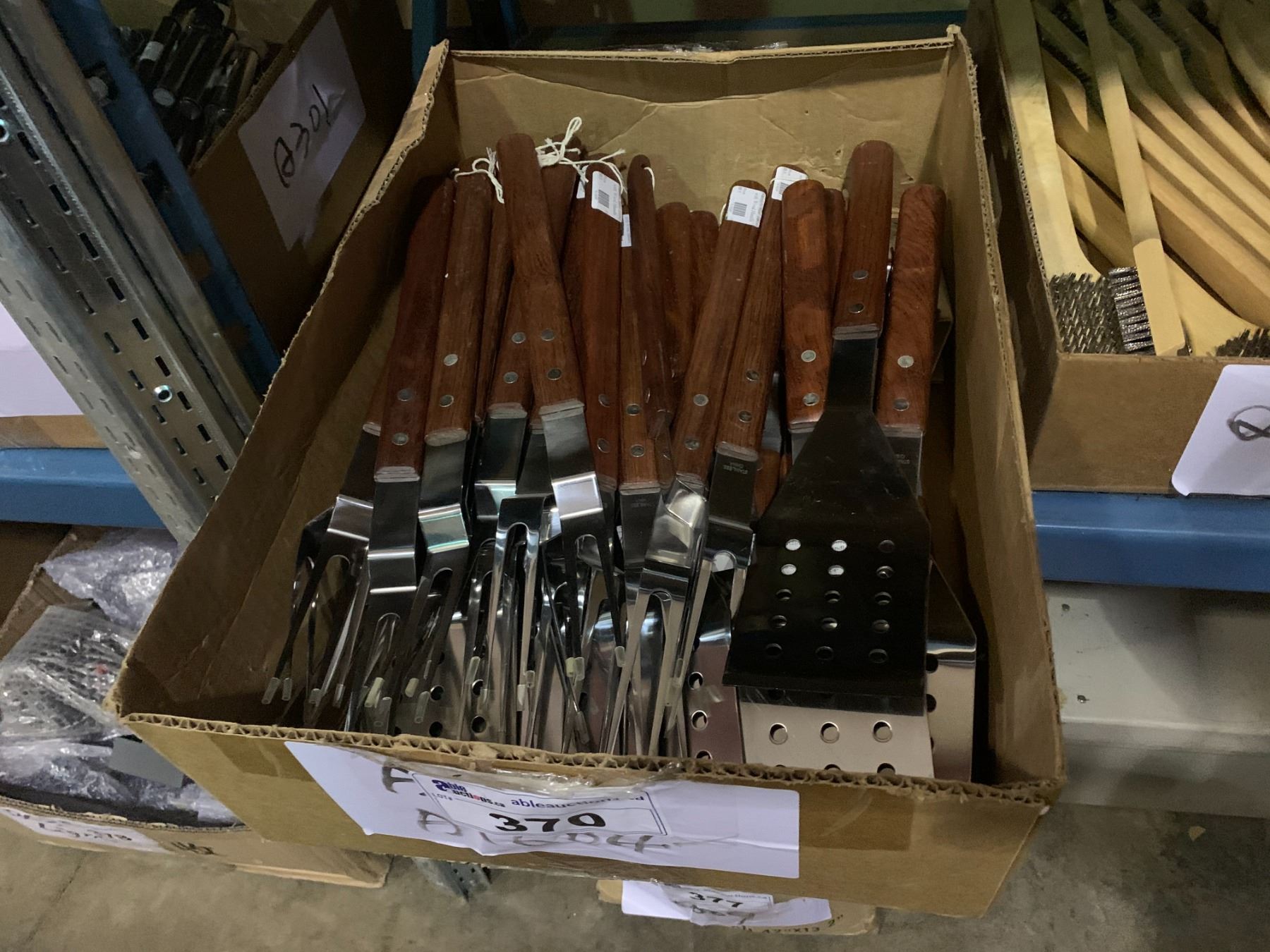 BOX OF ASSORTED BBQ TOOLS ( FORKS & SPATULAS )