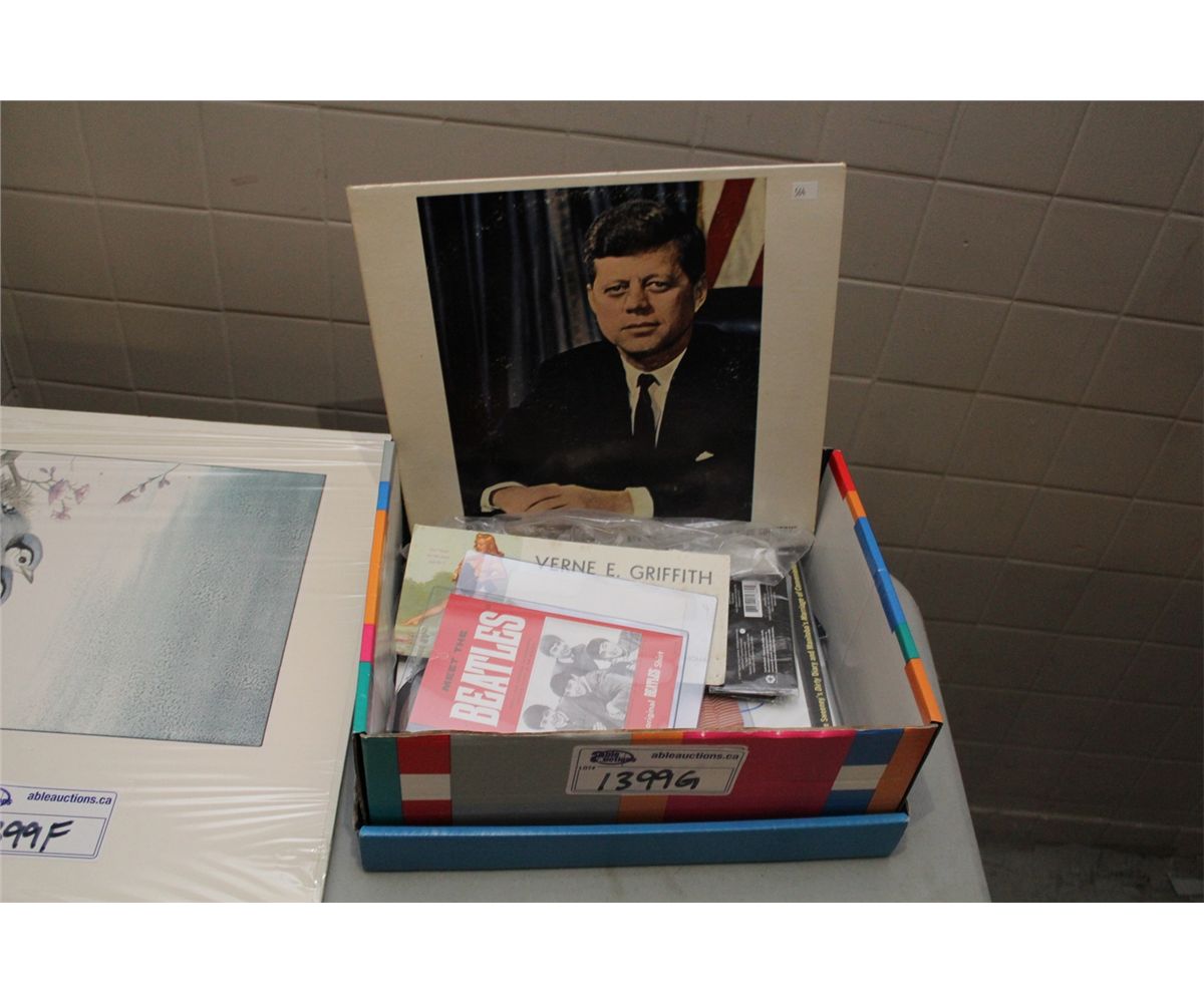 BOX OF ASSORTED BEATLES AND MARILYN MEMORABILIA