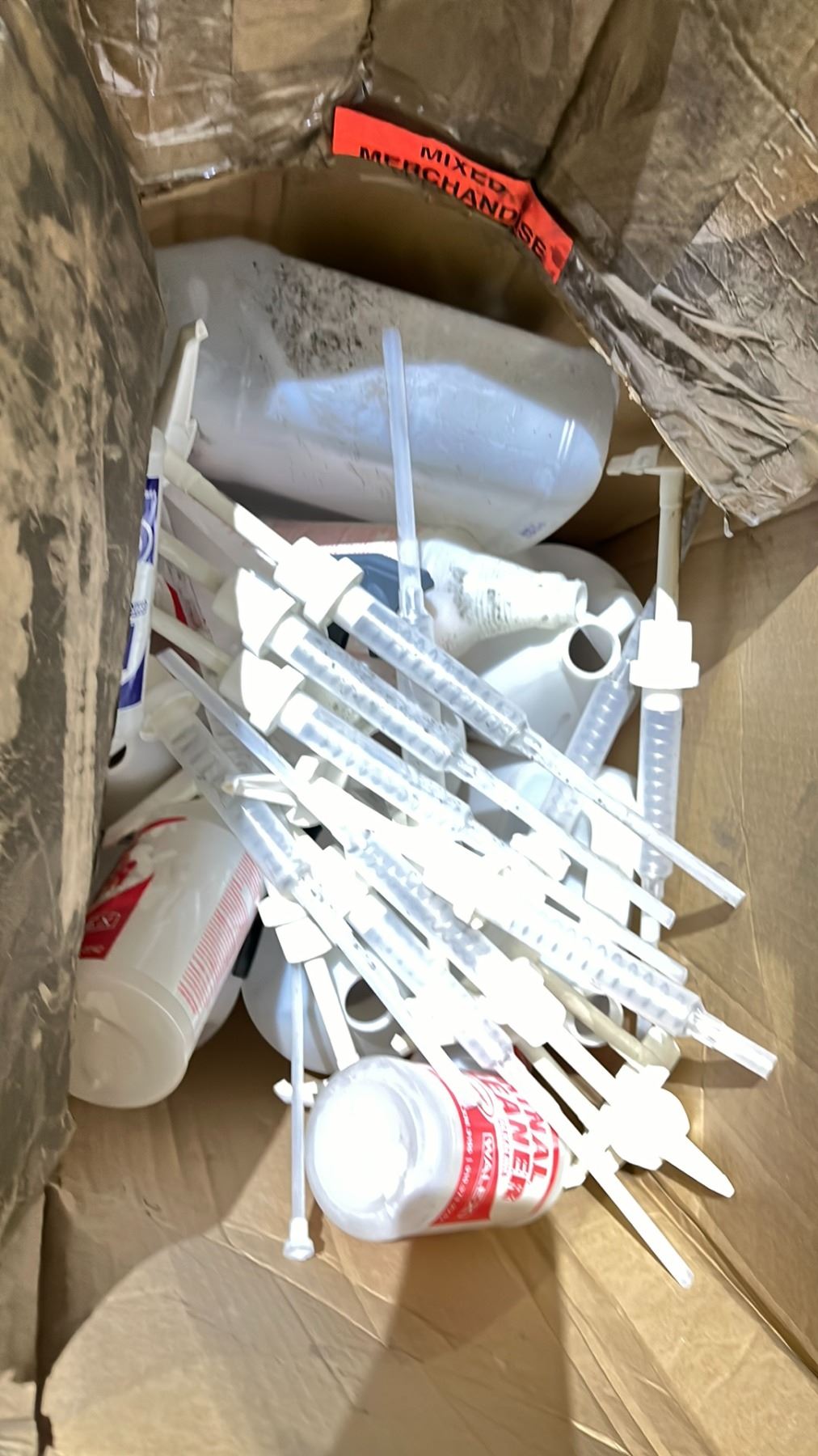 BOX OF ASSORTED BOTTLES AND PUMPS