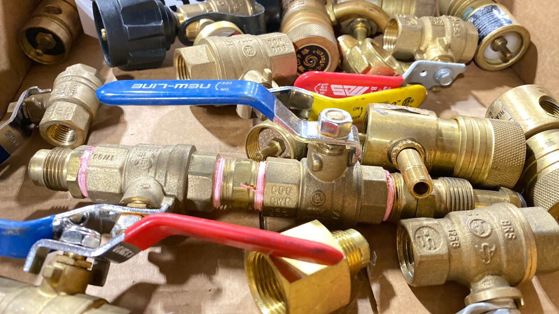BOX OF ASSORTED BRASS FITTINGS