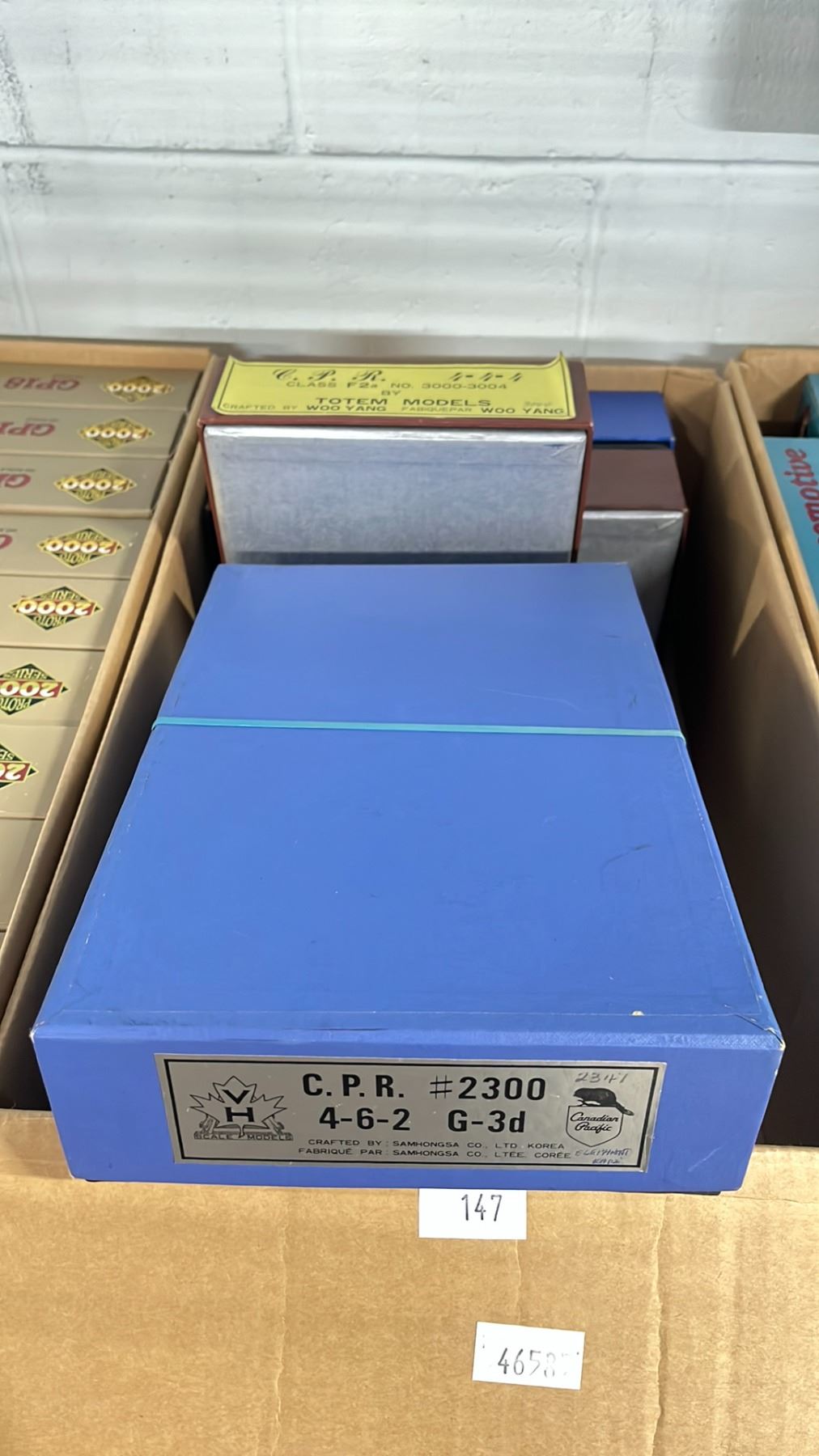 BOX OF ASSORTED CANADIAN PACIFIC RAILWAY HO SCALE MODEL TRAINS