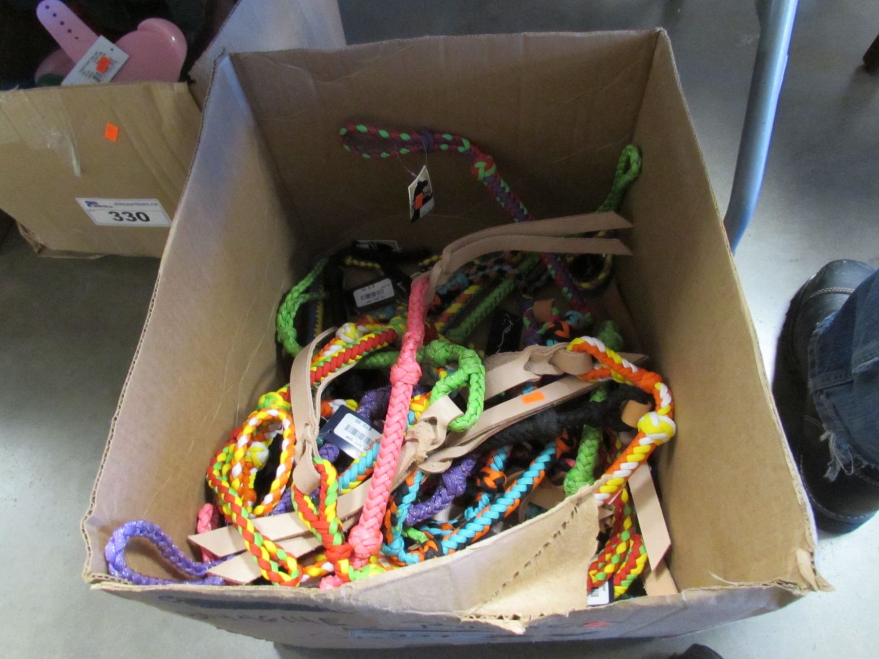 BOX OF ASSORTED COLOURFUL RIDING QUIRTS, ETC