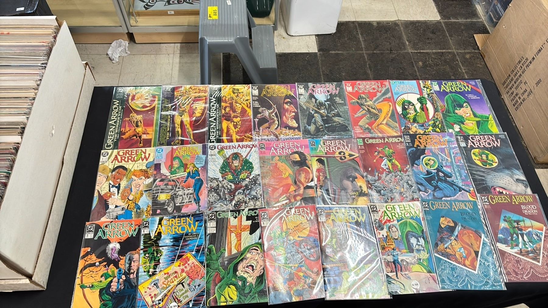 BOX OF ASSORTED COMIC BOOKS INCLUDING; GREEN ARROW, HELLBLAZER, THE QUESTION, THE SHADOW & MORE