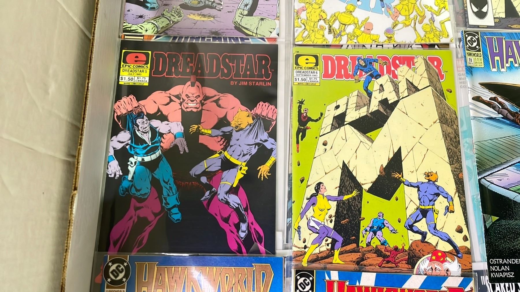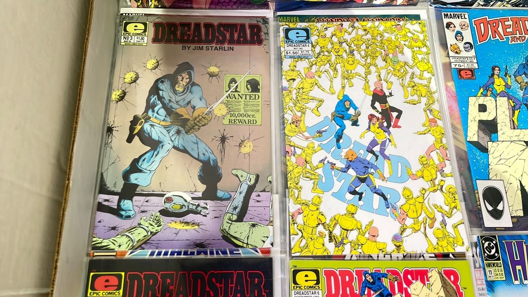BOX OF ASSORTED COMIC BOOKS INCLUDING; MARVEL WAR MACHINE, EPIC DREADSTAR, DC HAWK AND DOVE & MORE