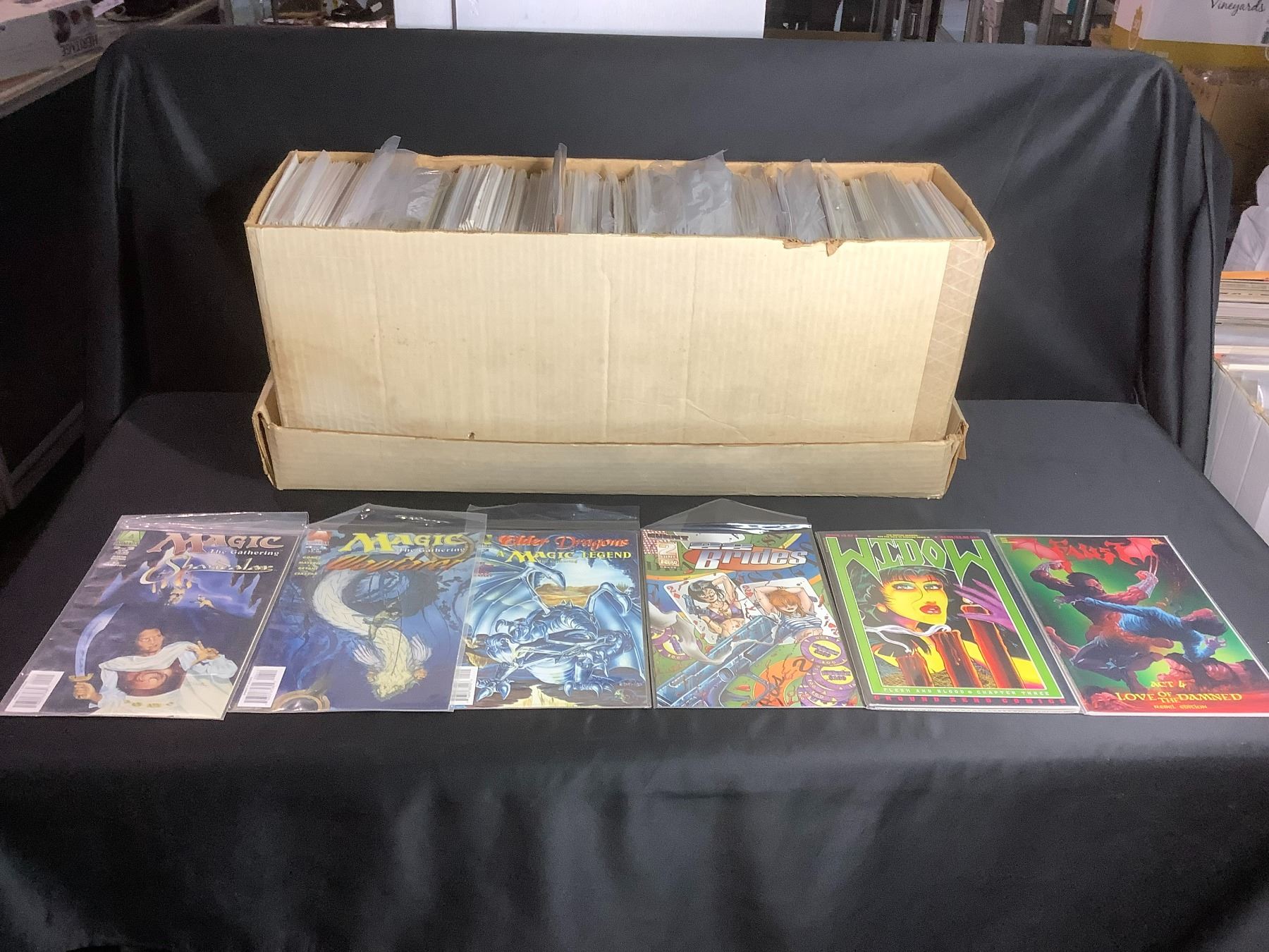 BOX OF ASSORTED COMIC BOOKS TITLES INCLUDE : MR. AVENGERS, ALIEN ENCOUNTERS, ELEMENTALS, TMNT PRESENTS APRIL ONEIL, & MUCH MORE