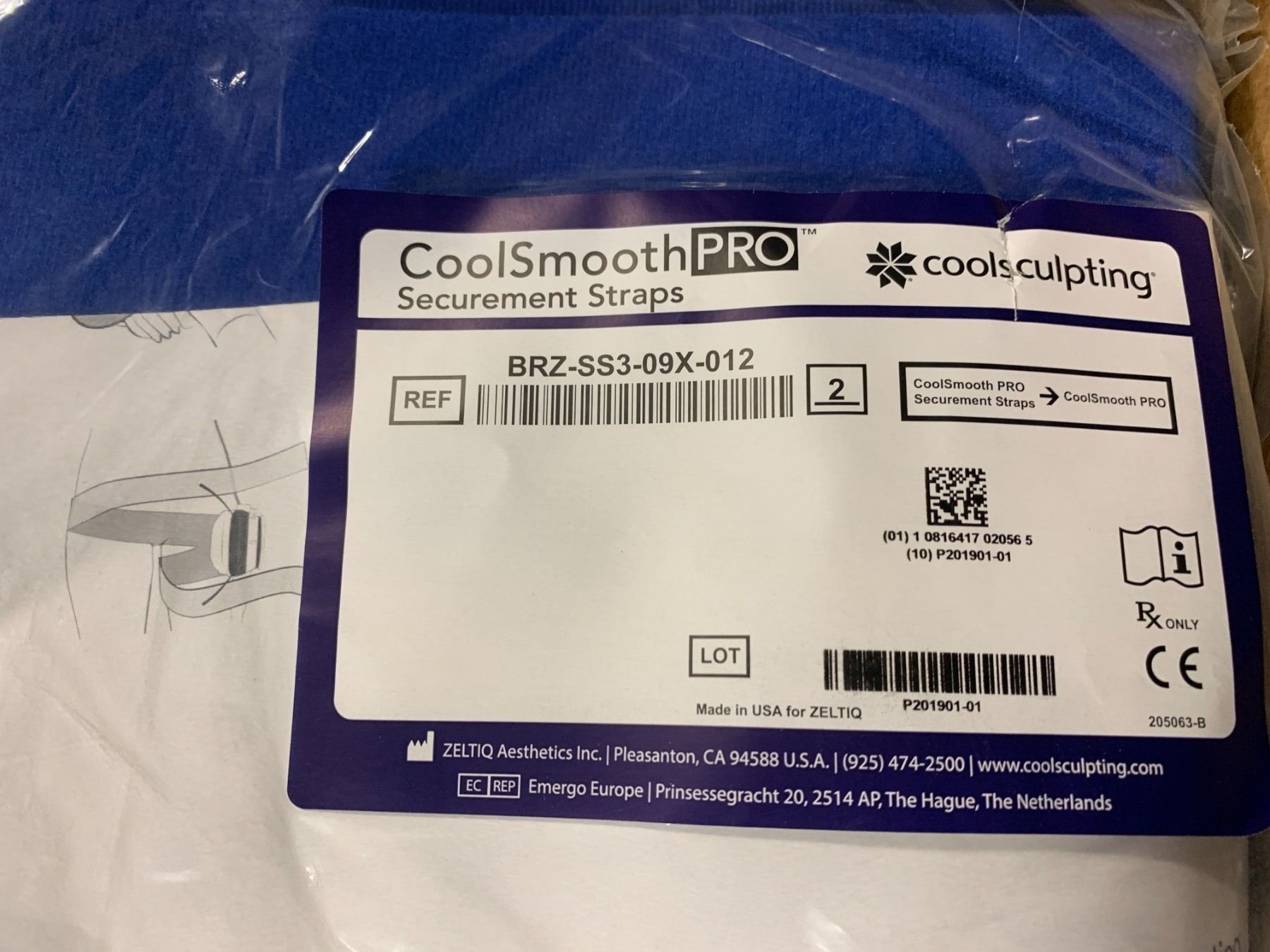 BOX OF ASSORTED COMMERCIAL COOLSCULPTING ACCESSORIES & SECUREMENT STRAPS