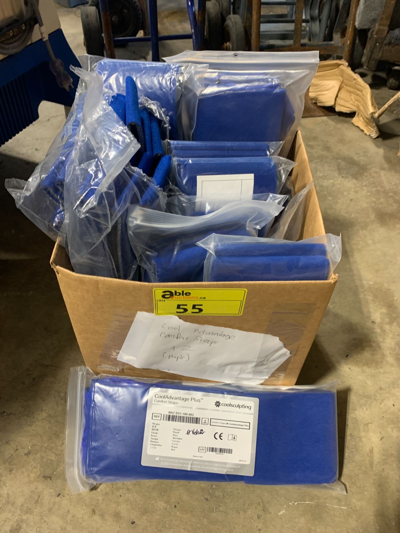 BOX OF ASSORTED COMMERCIAL COOLSCULPTING ACCESSORIES & SECUREMENT STRAPS