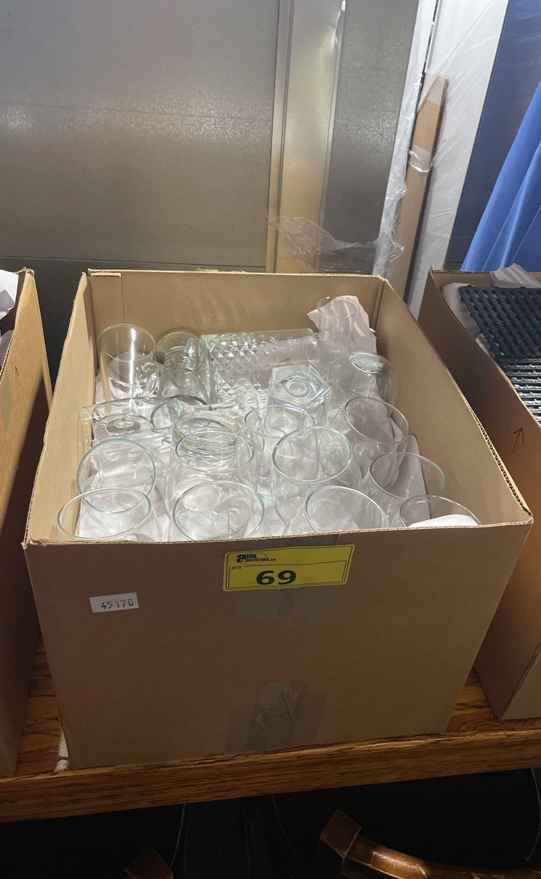 BOX OF ASSORTED COMMERCIAL GLASS BARWARE