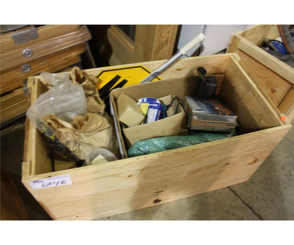 BOX OF ASSORTED CONSTRUCTION SUPPLIES