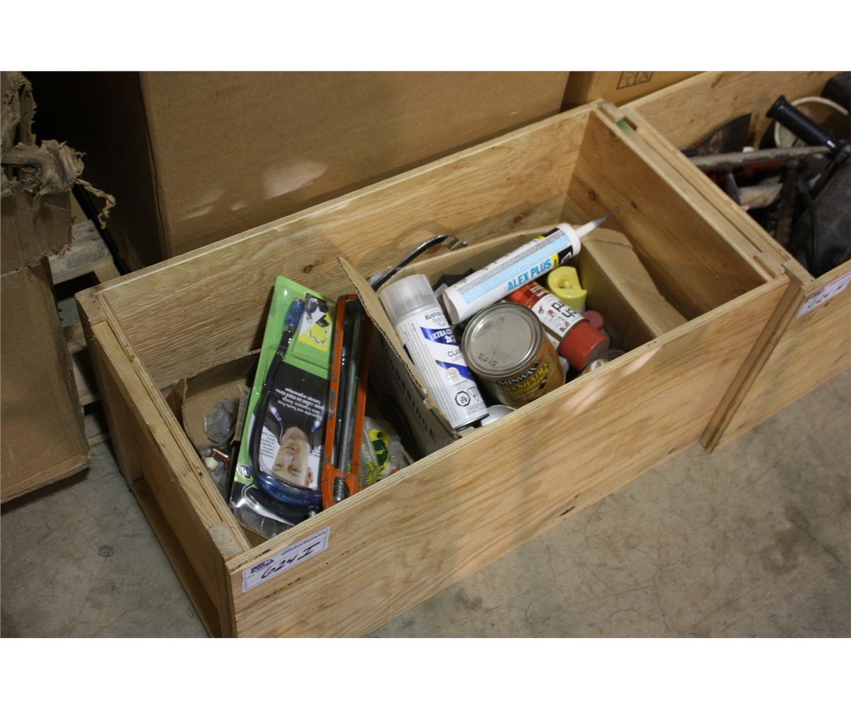 BOX OF ASSORTED CONSTRUCTION SUPPLIES