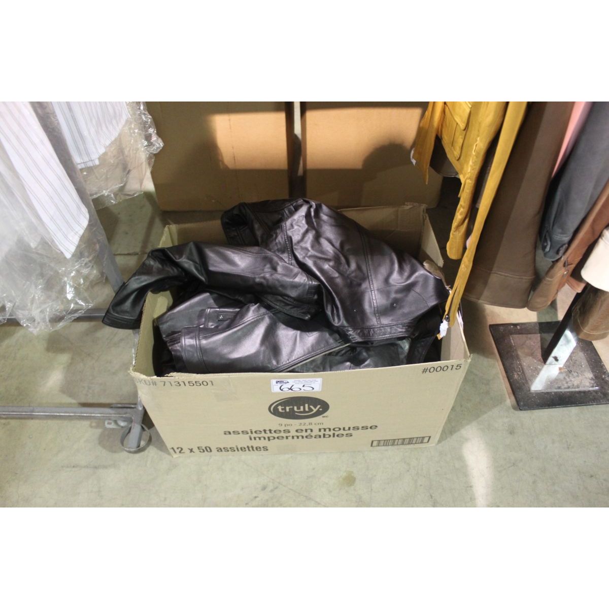 BOX OF ASSORTED DAMAGED LEATHER GOODS & CLOTHING