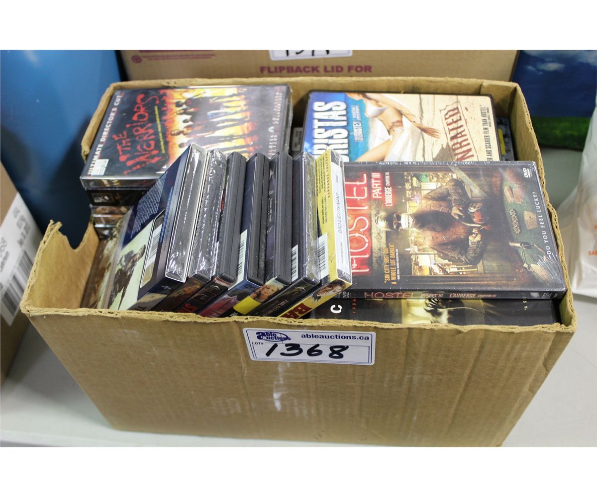 BOX OF ASSORTED DVD'S, MANY SEALED