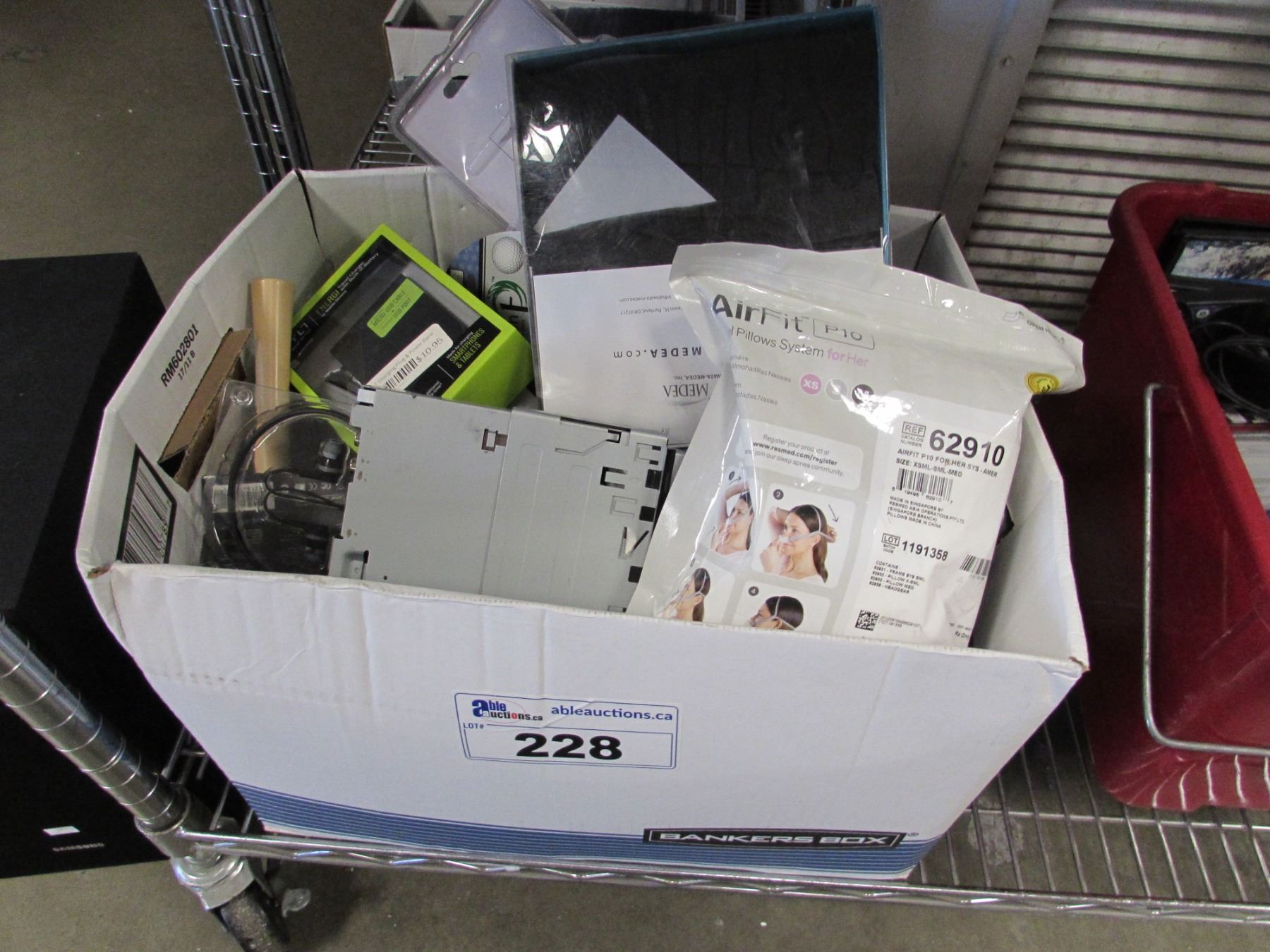 BOX OF ASSORTED ELECTRONICS, CABLES, ACCESSORIES (CAR STEREO, POWER BANK, HEADPHONES, CASES, ART SUPPLY, ETC)
