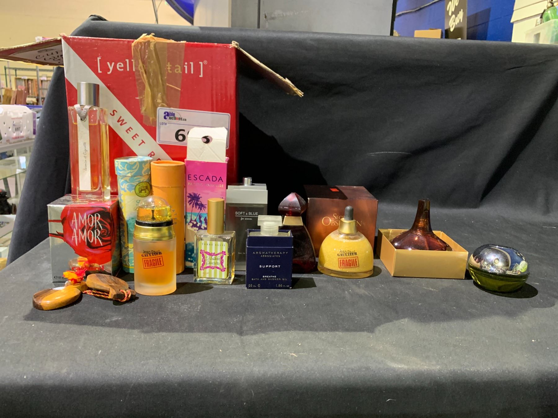 BOX OF ASSORTED FRAGRANCE INCLUDING; JEAN PAUL GAULTIER, LANCASTER, ESCADA & MORE