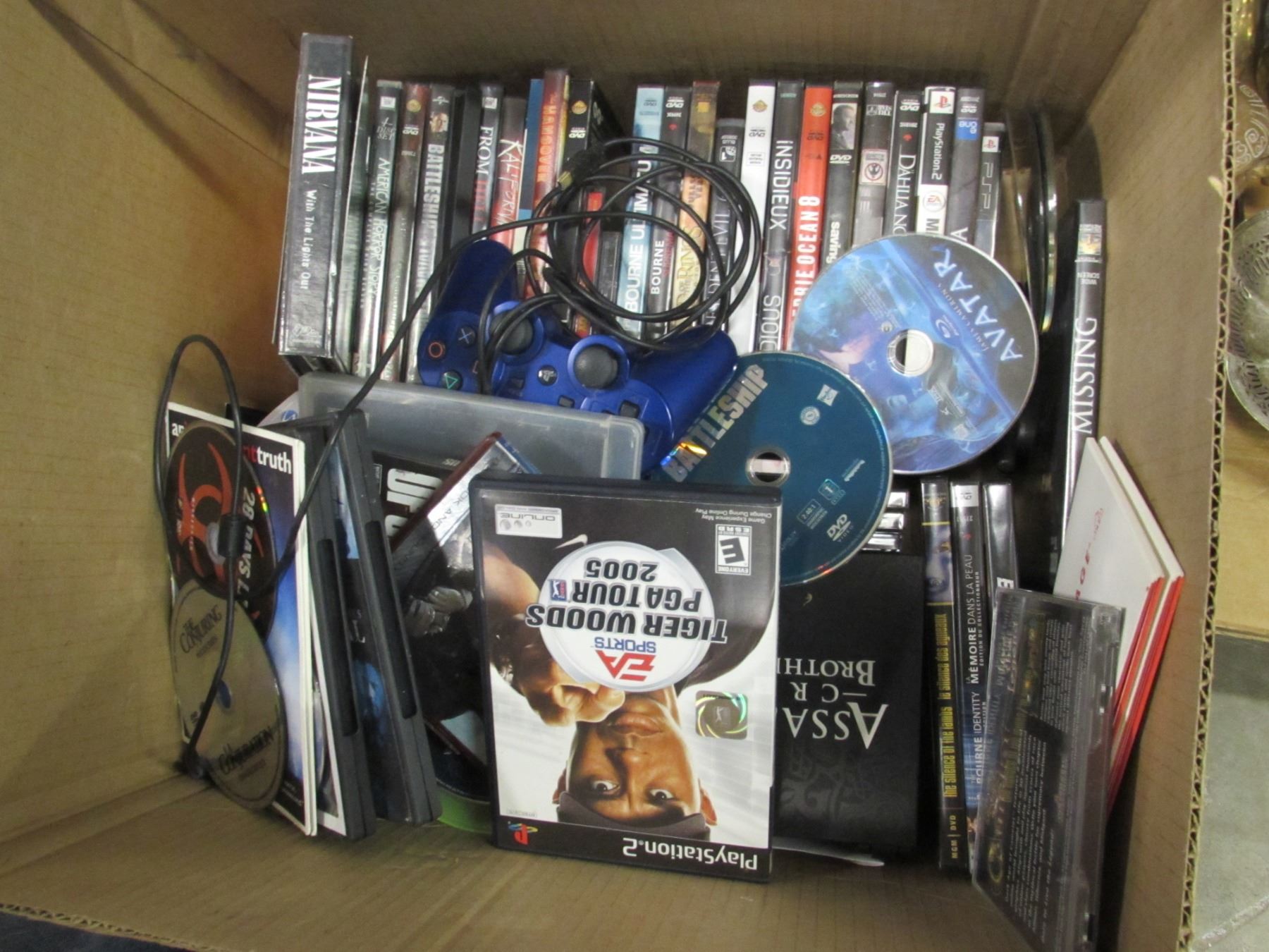 BOX OF ASSORTED GAMES, DVDS & ELECTRONICS (SEIZED STORAGE)