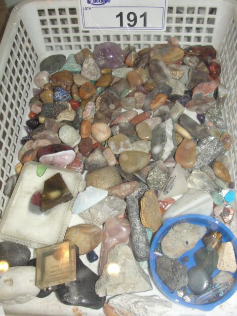 BOX OF ASSORTED GEOLOGICAL ROCKHOUND COLLECTORS AGATE AND POLISHED STONES