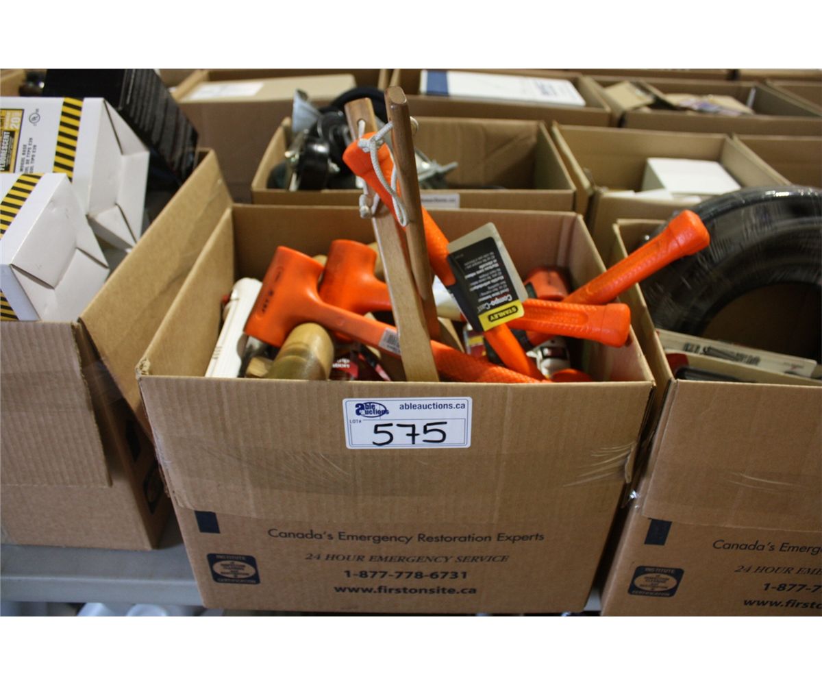BOX OF ASSORTED HAMMERS AND POWER BARS