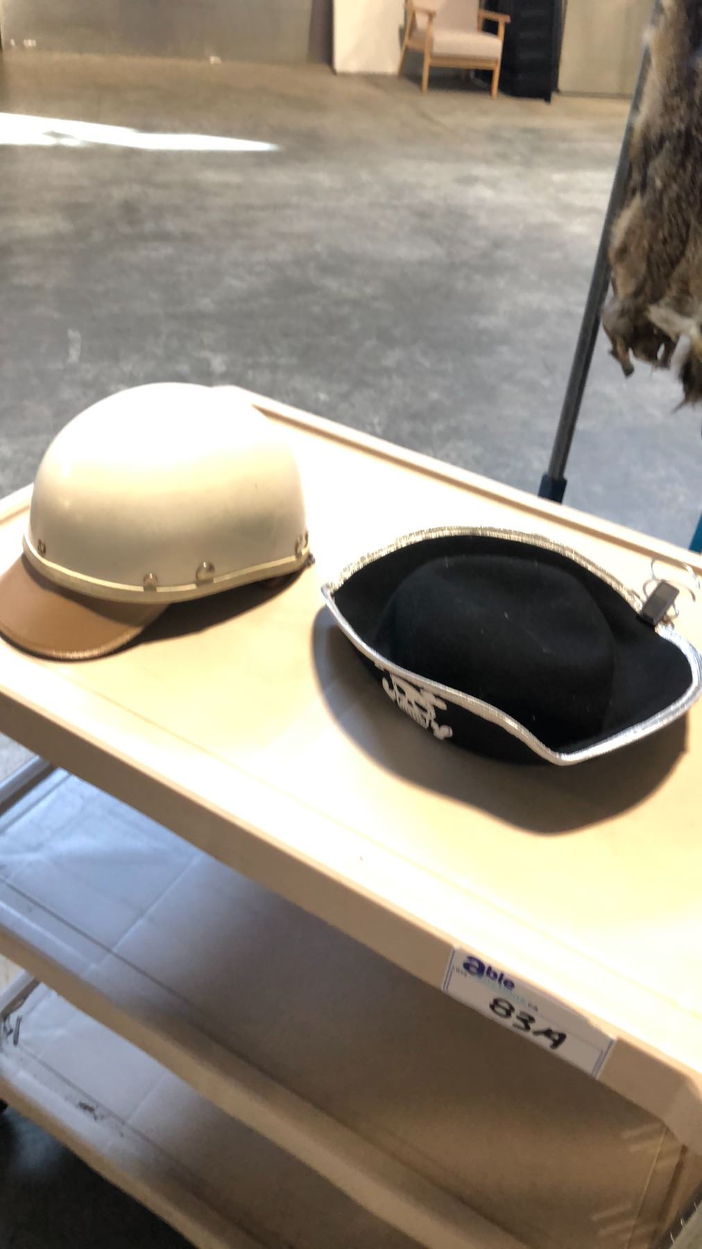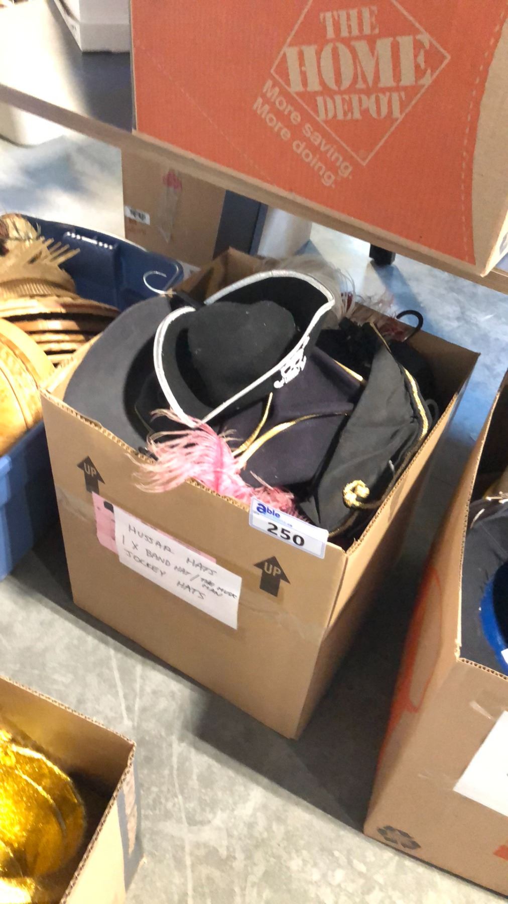 BOX OF ASSORTED HATS INCLUDING PIRATE, JOCKEY, MUSKETEER ETC