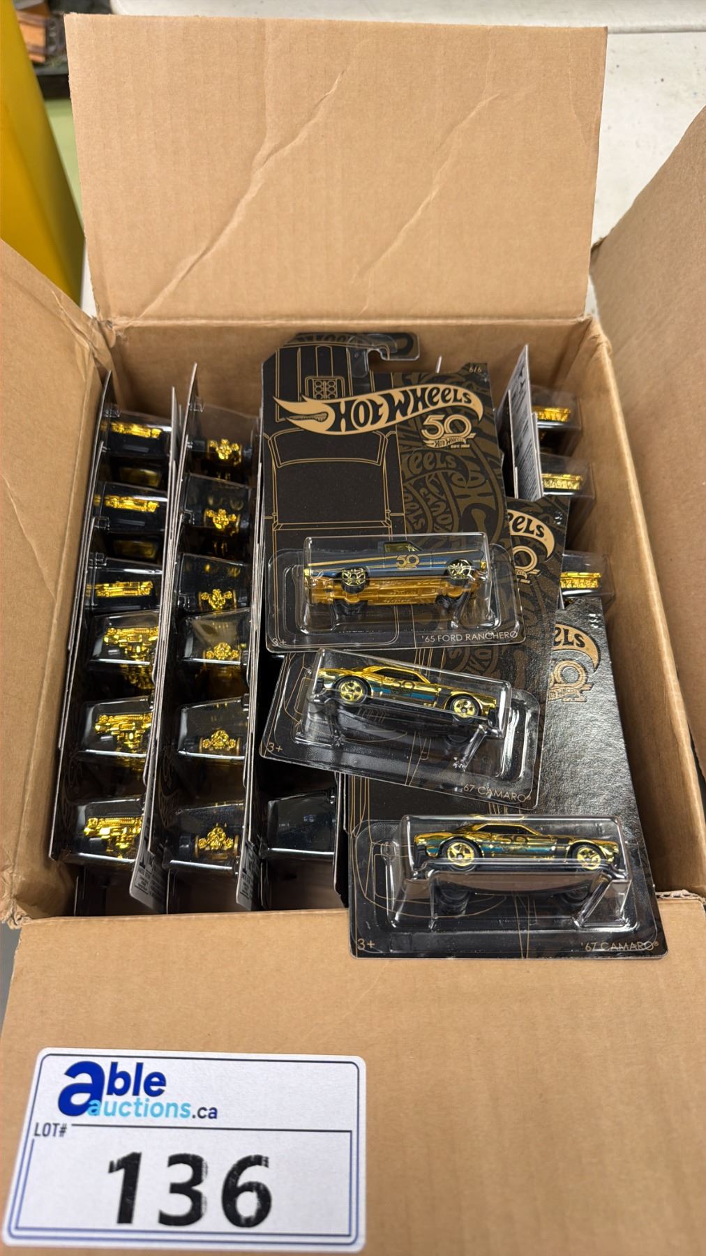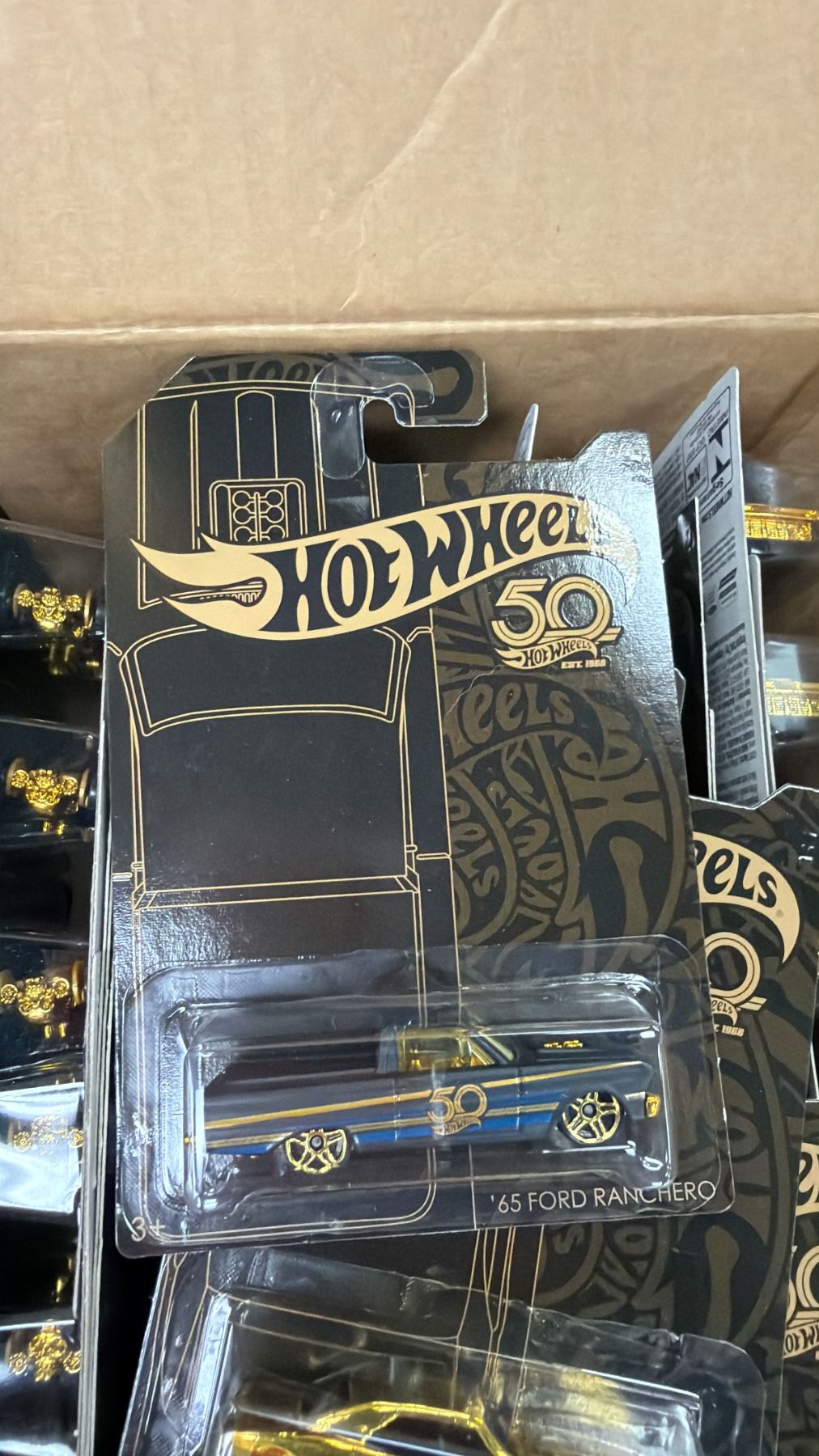 BOX OF ASSORTED HOT WHEELS 50TH ANNIVERSARY MODEL CARS