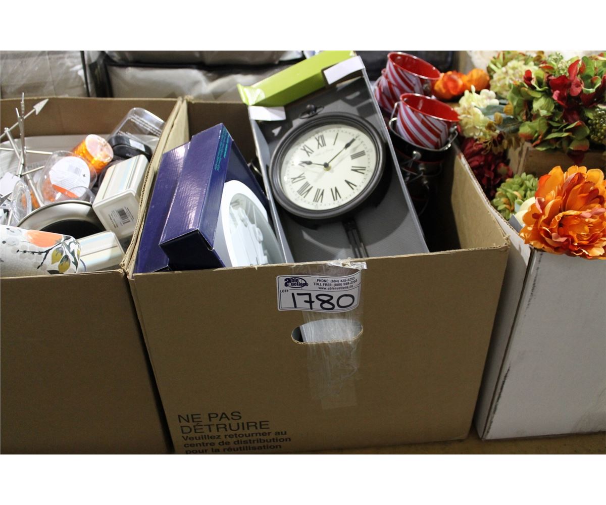 BOX OF ASSORTED HOUSEHOLD DECOR ITEMS