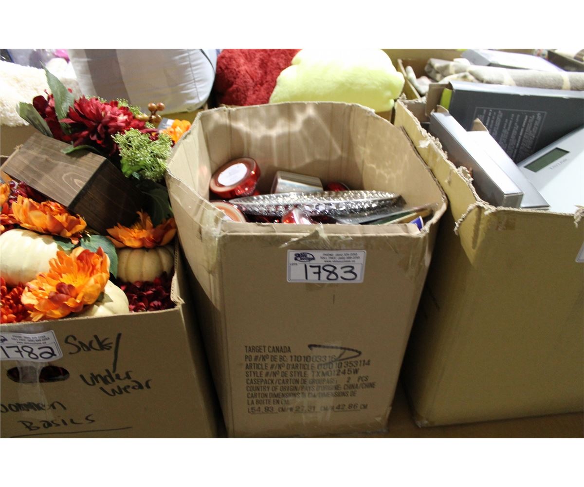 BOX OF ASSORTED HOUSEHOLD DECOR ITEMS