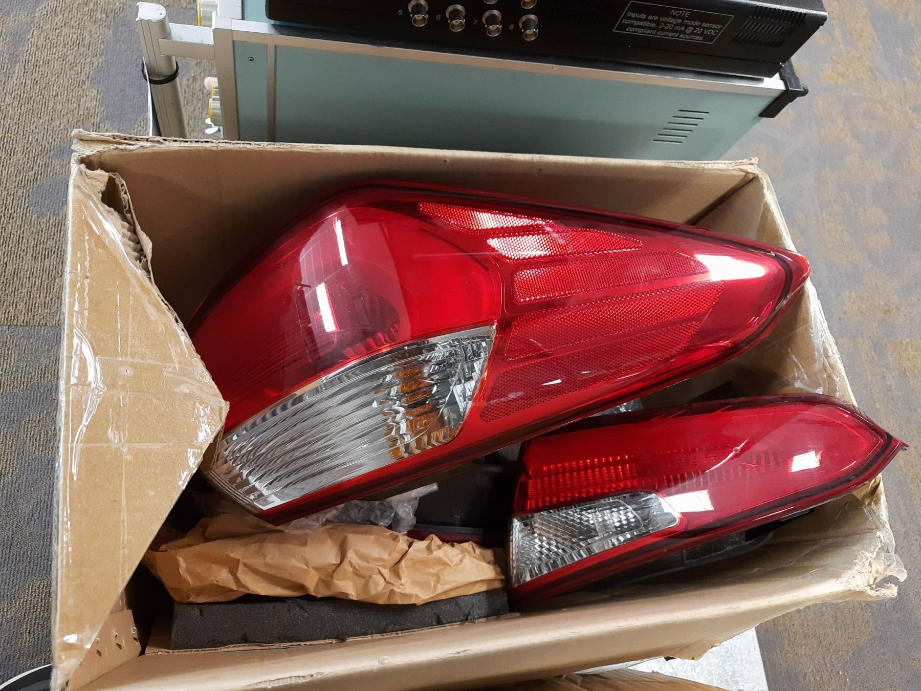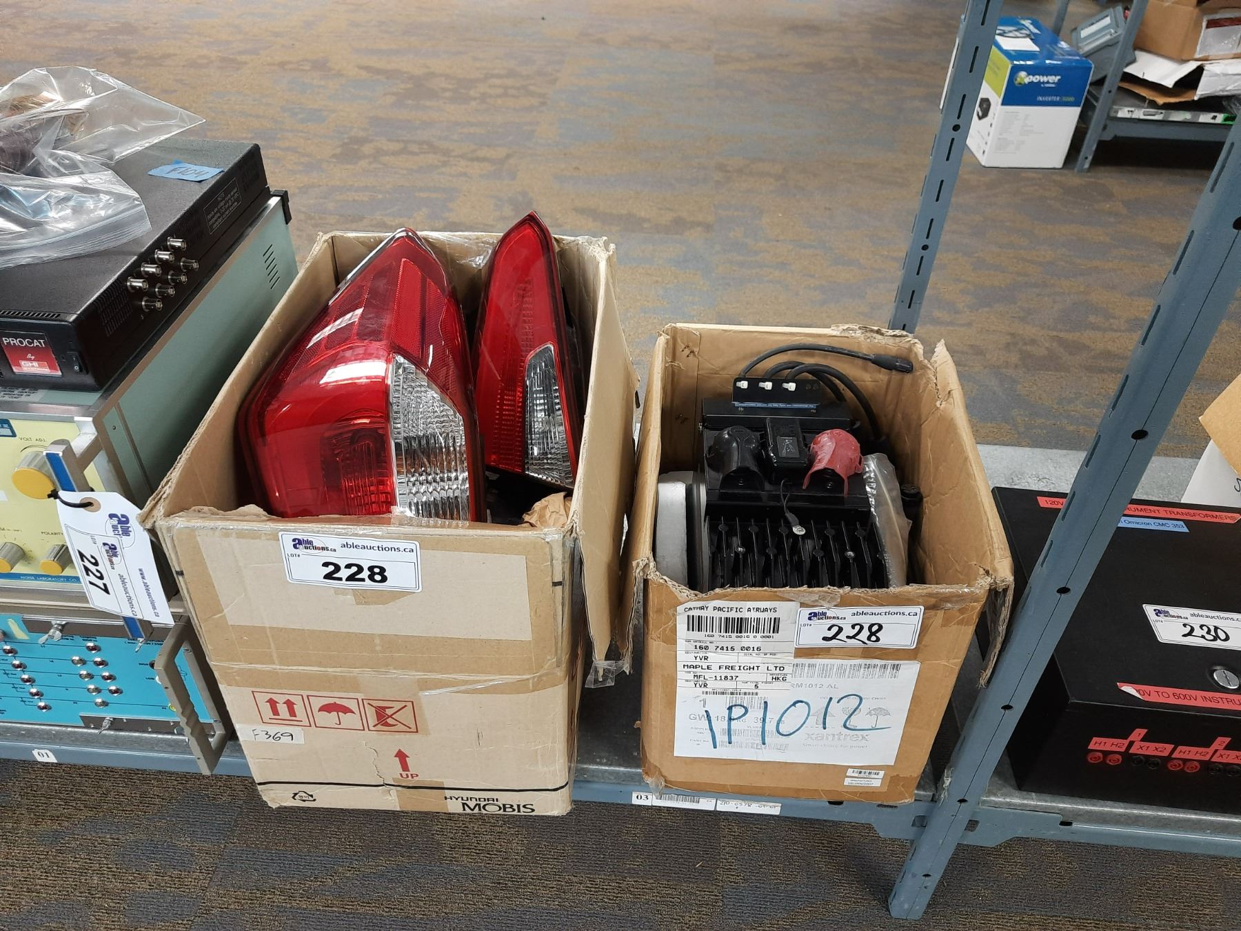 BOX OF ASSORTED KIA VEHICLE LIGHTS, AND XANTREX P1012 AL POWER INVERTER CHARGER