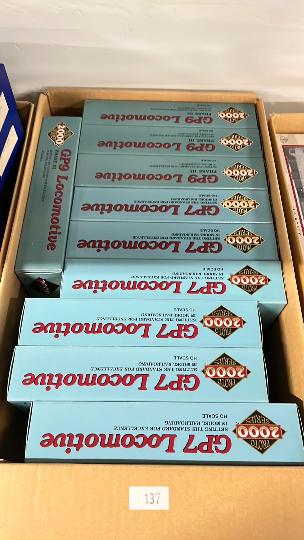 BOX OF ASSORTED LIMITED EDITION PROTO 2000 SERIES GP7 LOCOMOTIVE HO SCALE MODEL TRAINS