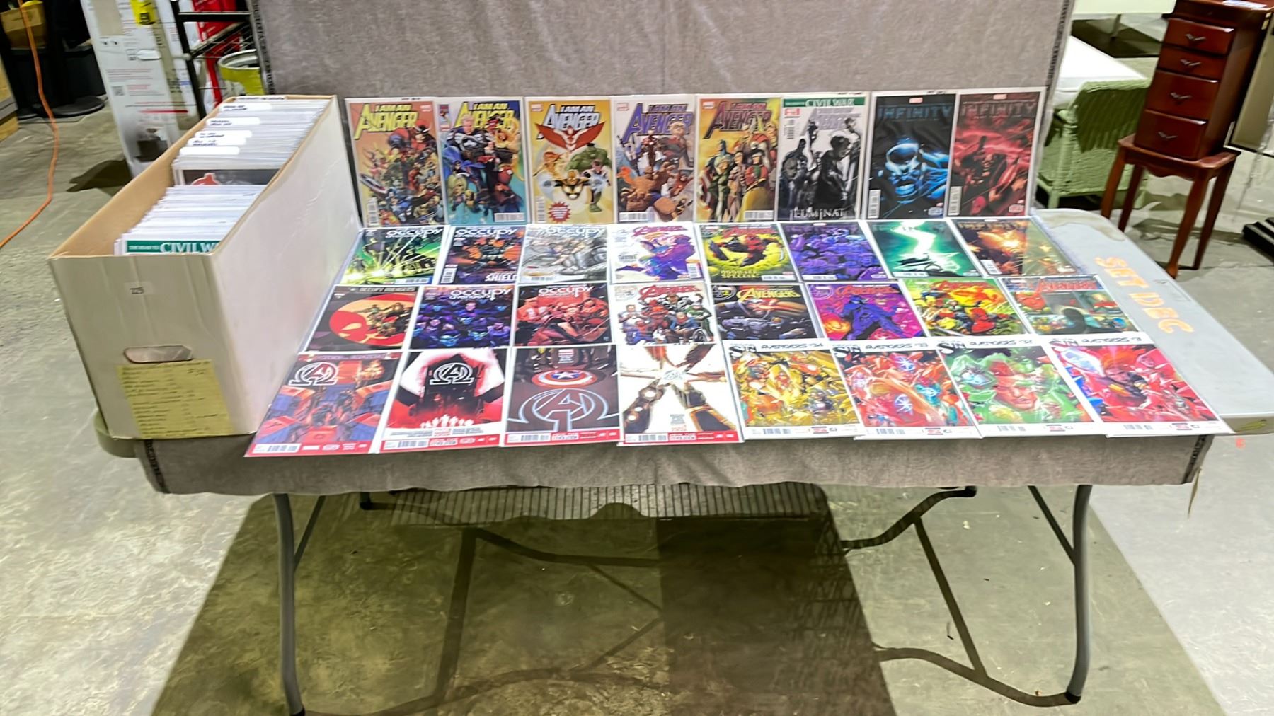 BOX OF ASSORTED MARVEL COMIC BOOKS INCLUDING; THE AVENGERS & INFINITY