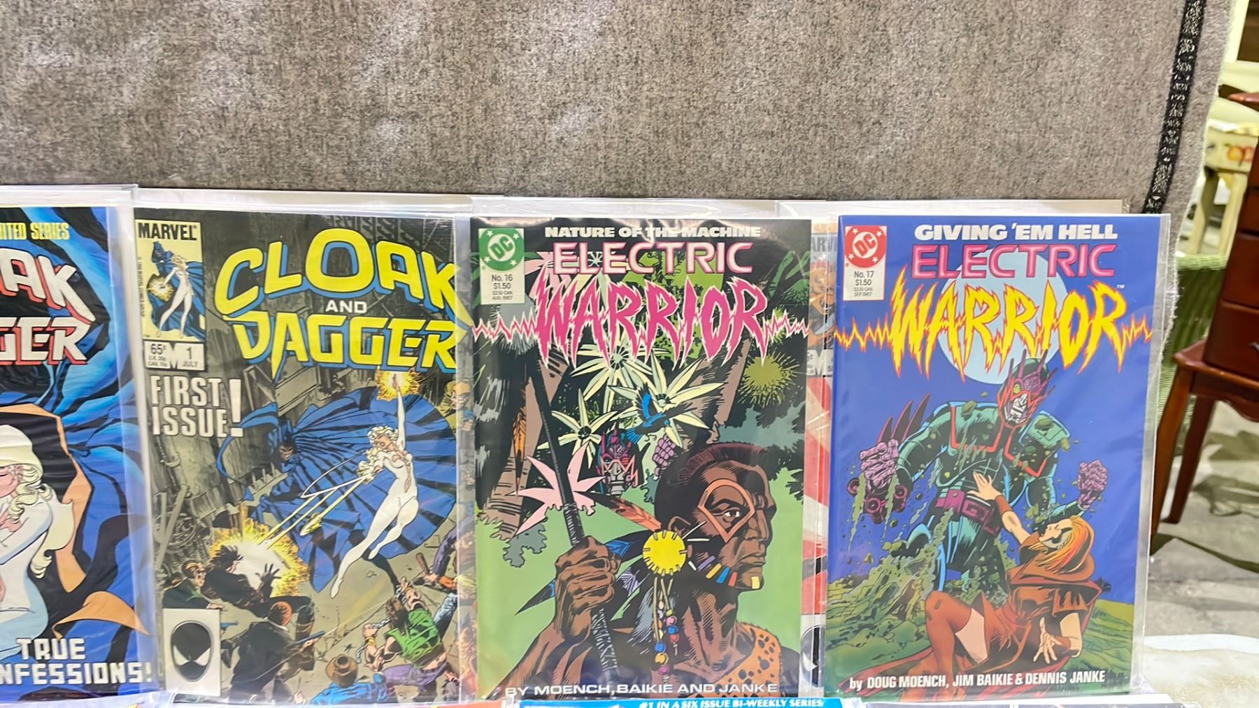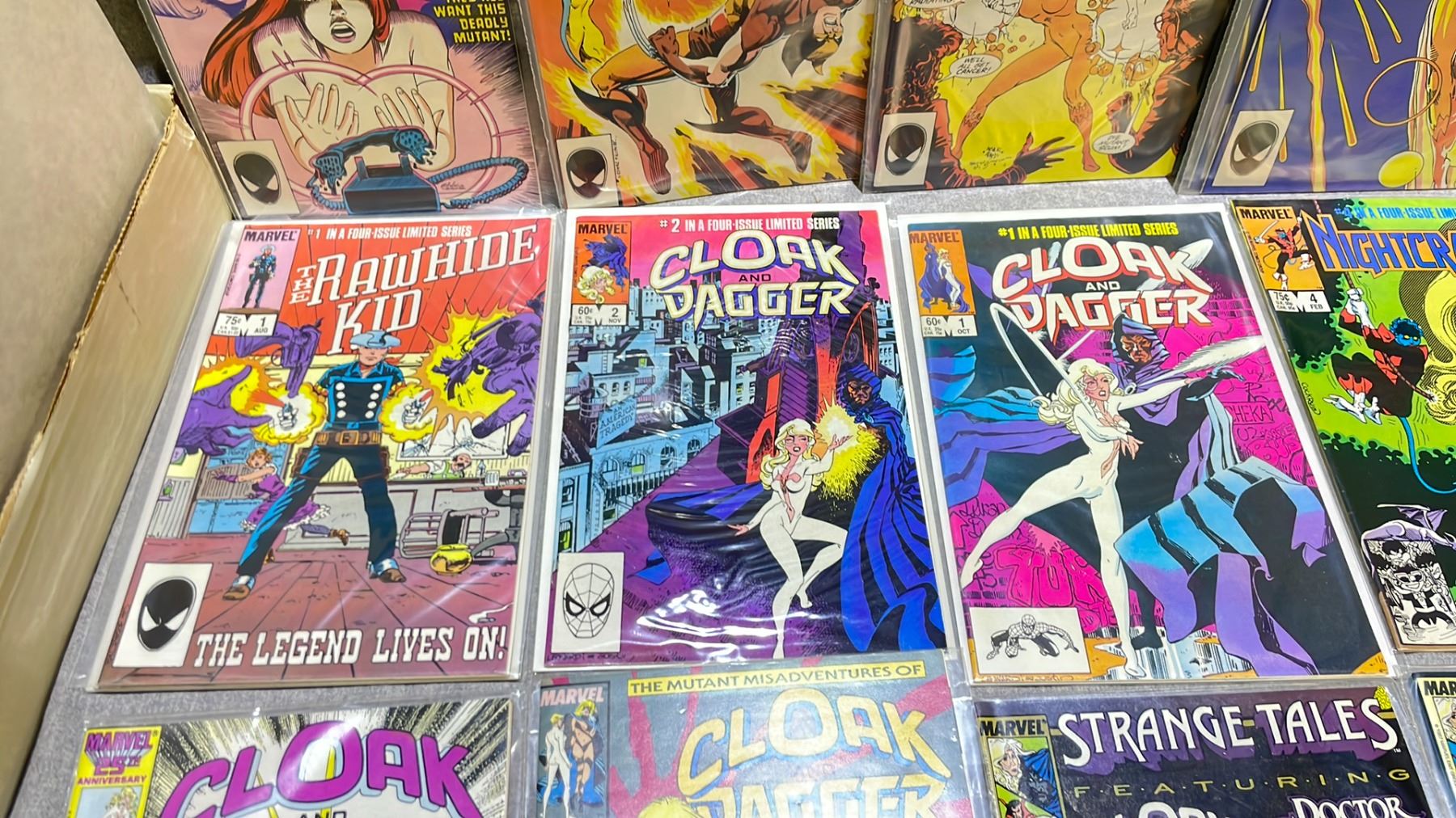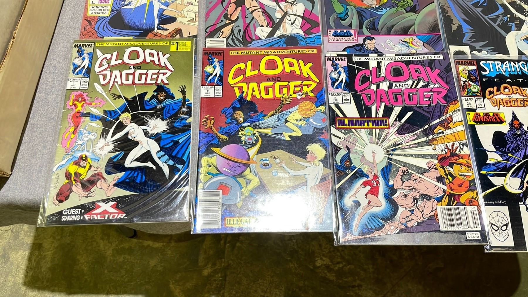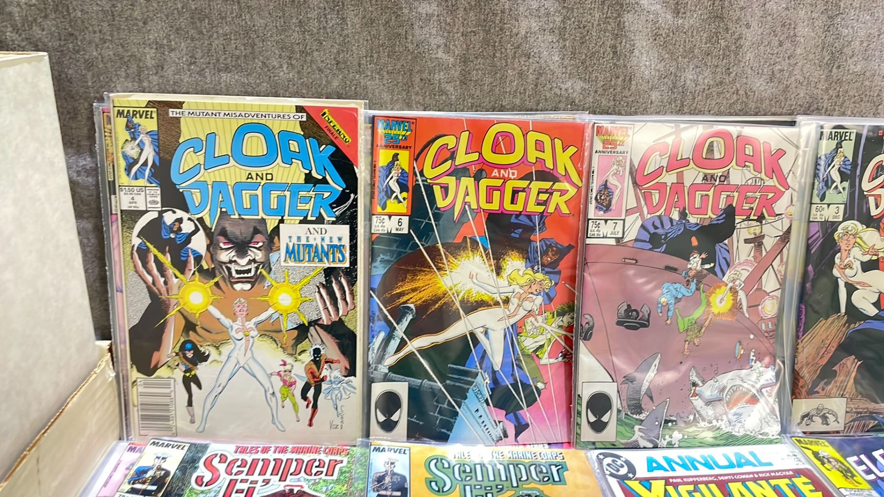 BOX OF ASSORTED MARVEL & DC COMIC BOOKS INCLUDING; CLOAK AND DAGGER, ELF QUEST, TEAM AMERICA & MORE