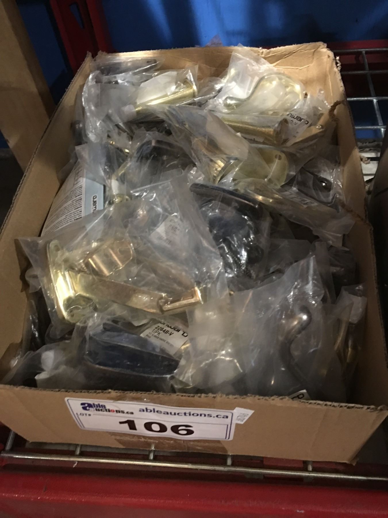 BOX OF ASSORTED METAL HINGES & HARDWARE