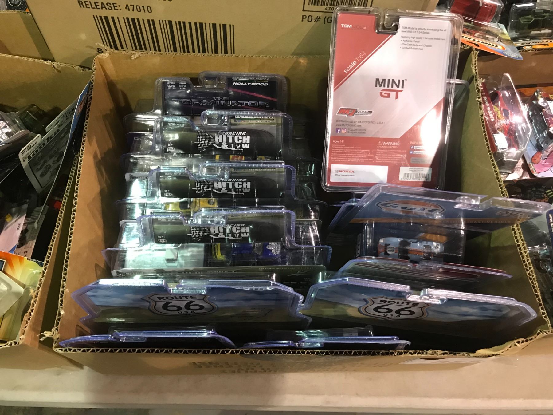 BOX OF ASSORTED NEW CARS (GREENLIGHT, GULF, JOHNNY LIGHTNING)