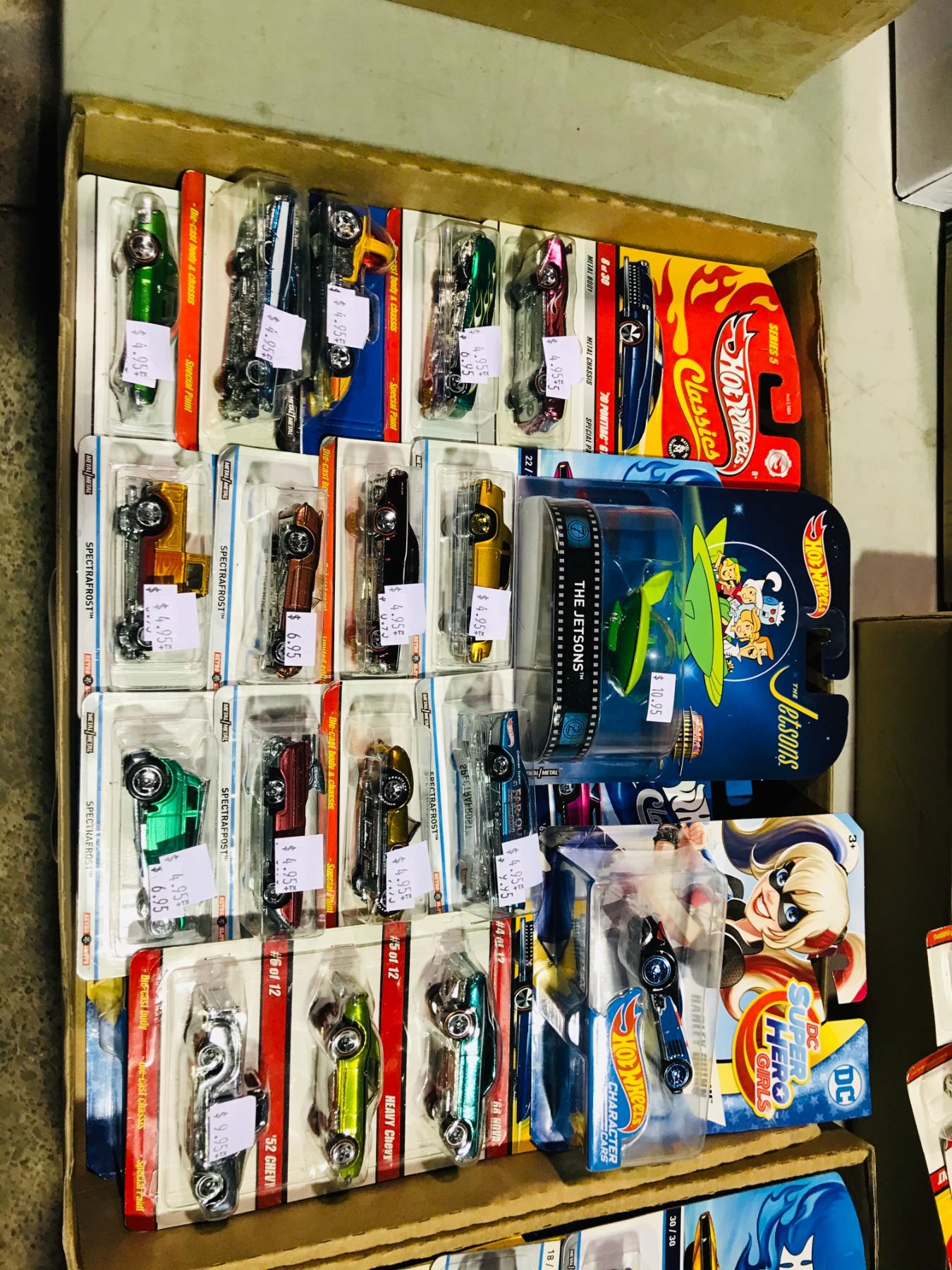 BOX OF ASSORTED NEW IN PACKAGING TOY CARS (HOT WHEELS)
