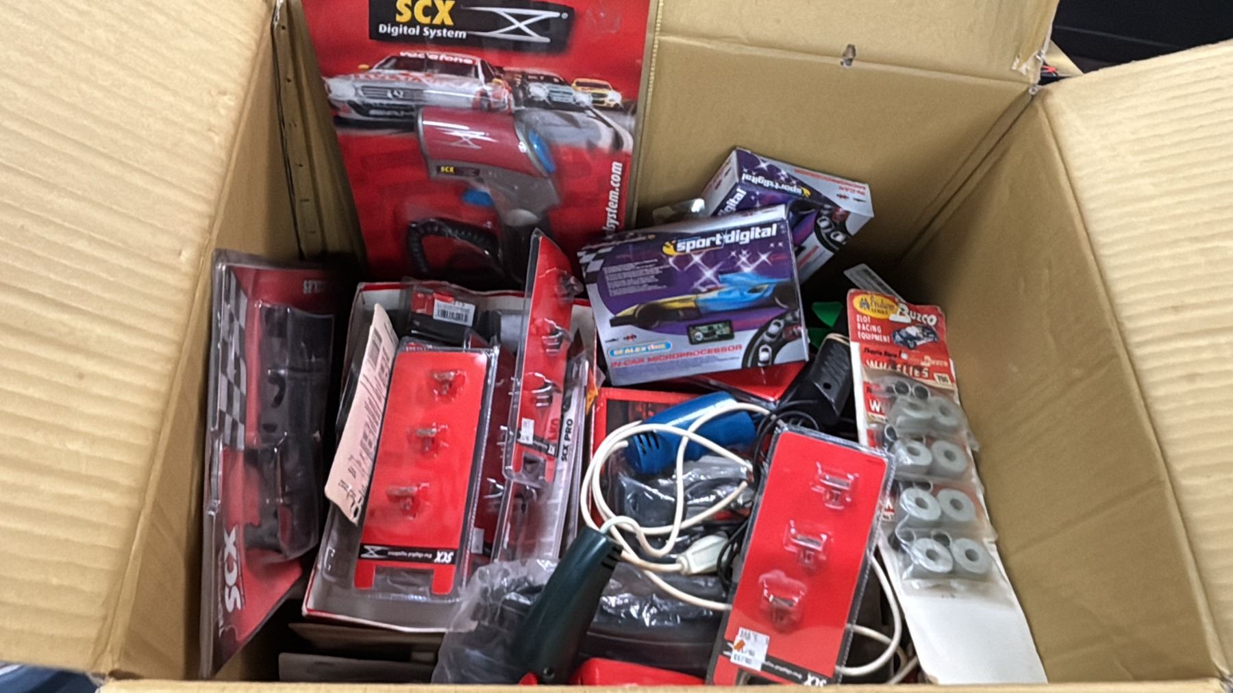 BOX OF ASSORTED R/C & MODEL CAR ACCESSORIES & PARTS