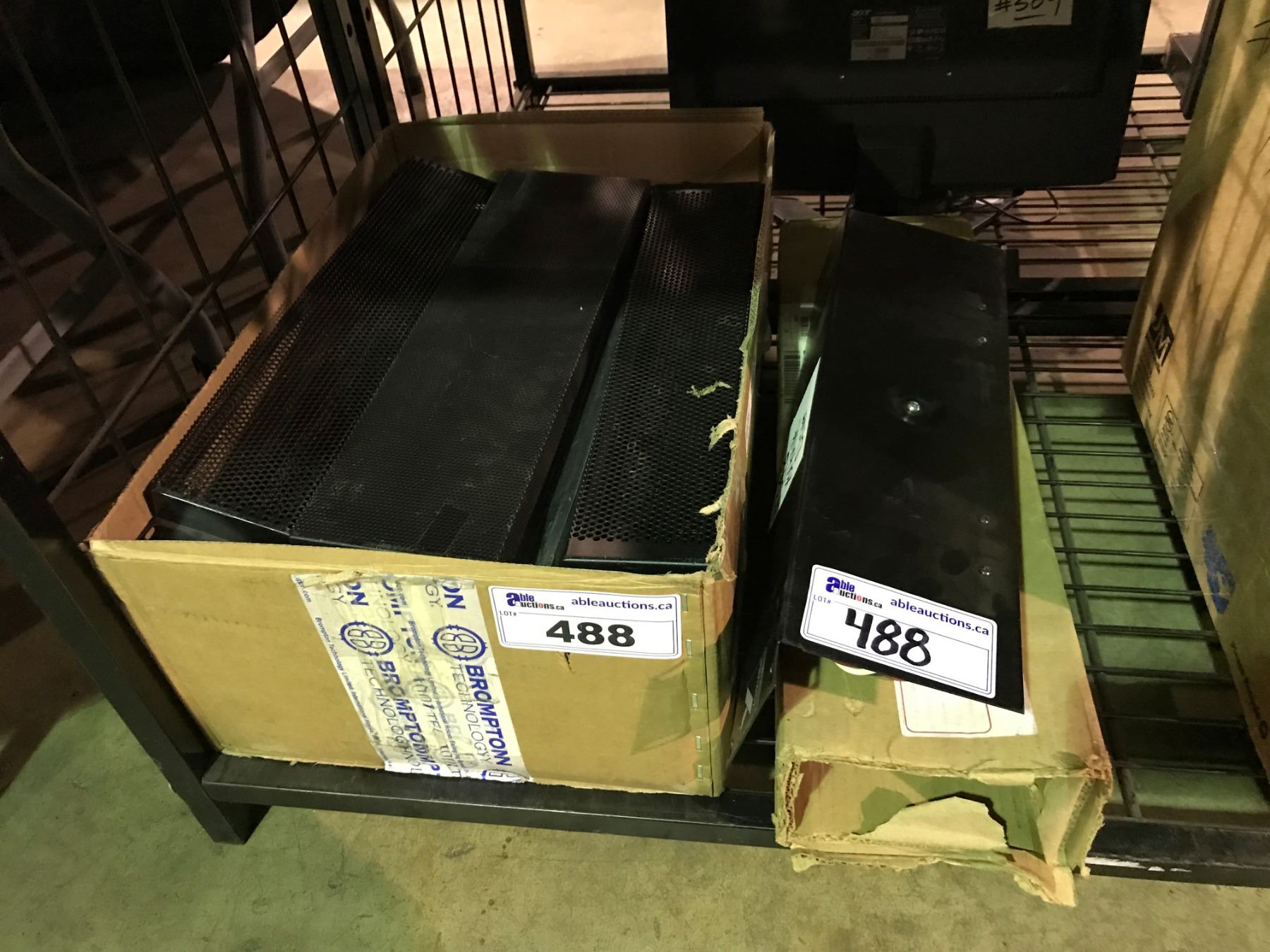 BOX OF ASSORTED RACK MOUNT SECURITY GATES & YORKVILLE RACK MOUNT DRIVER