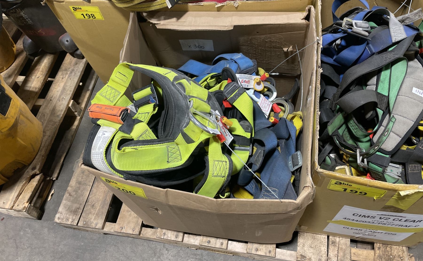 BOX OF ASSORTED RIGGING HARNESS & FALL PROTECTION STRAPS *MUST TAKE ALL IN BOX*