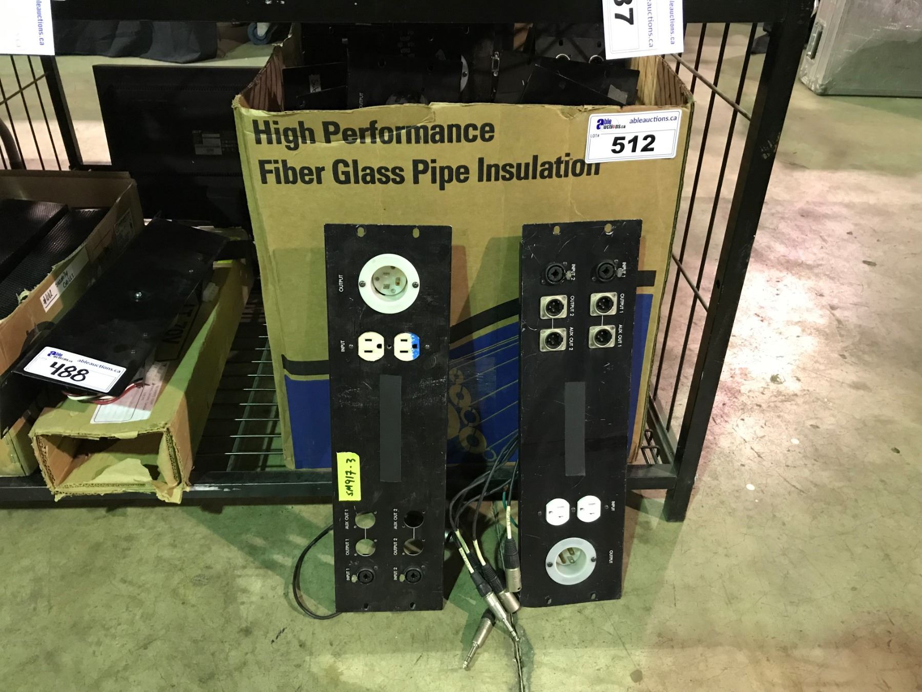 BOX OF ASSORTED SPLITTERS, PLUGS & POWER DISTRO PARTS